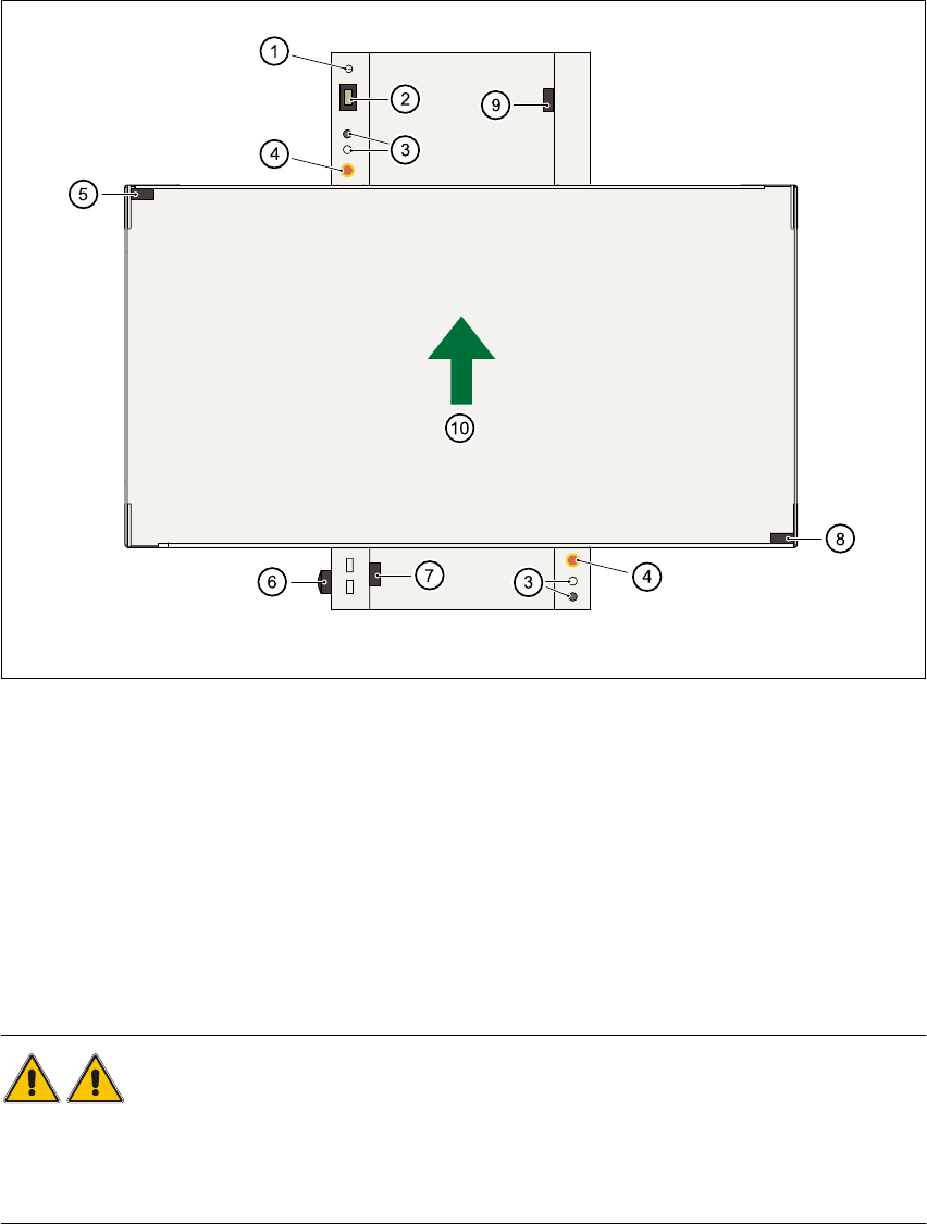 (5) Strömställare för kåpa, vänster (6) Huvudströmbrytare