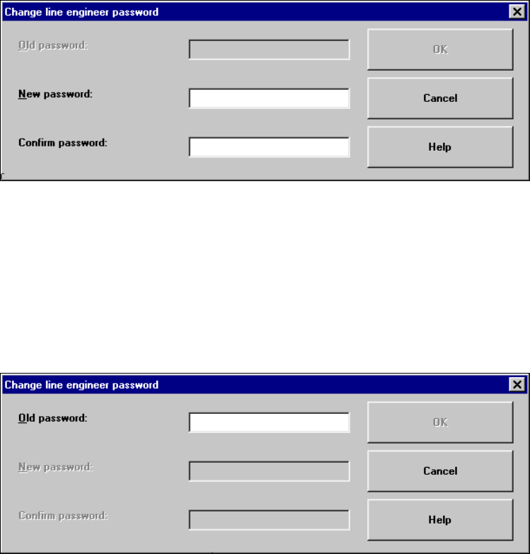 tekniker) kan användas. Behörighetsnivåerna "Line engineer" och "Service" (Ställare och Servi-