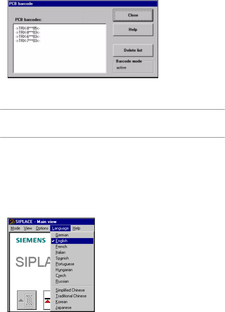 Sk ö tselinstruktion SIPLACE 80S-20/F4 3 Inledning och grundbegrepp Programvers ion SR.407.xx Utg å va 01/ 2001 SE 3.3 Anv ä ndargr ä nss nitt - vyer oc h menyer 131 3 Å Klicka p å knappen Dele te list (R adera lista) f …