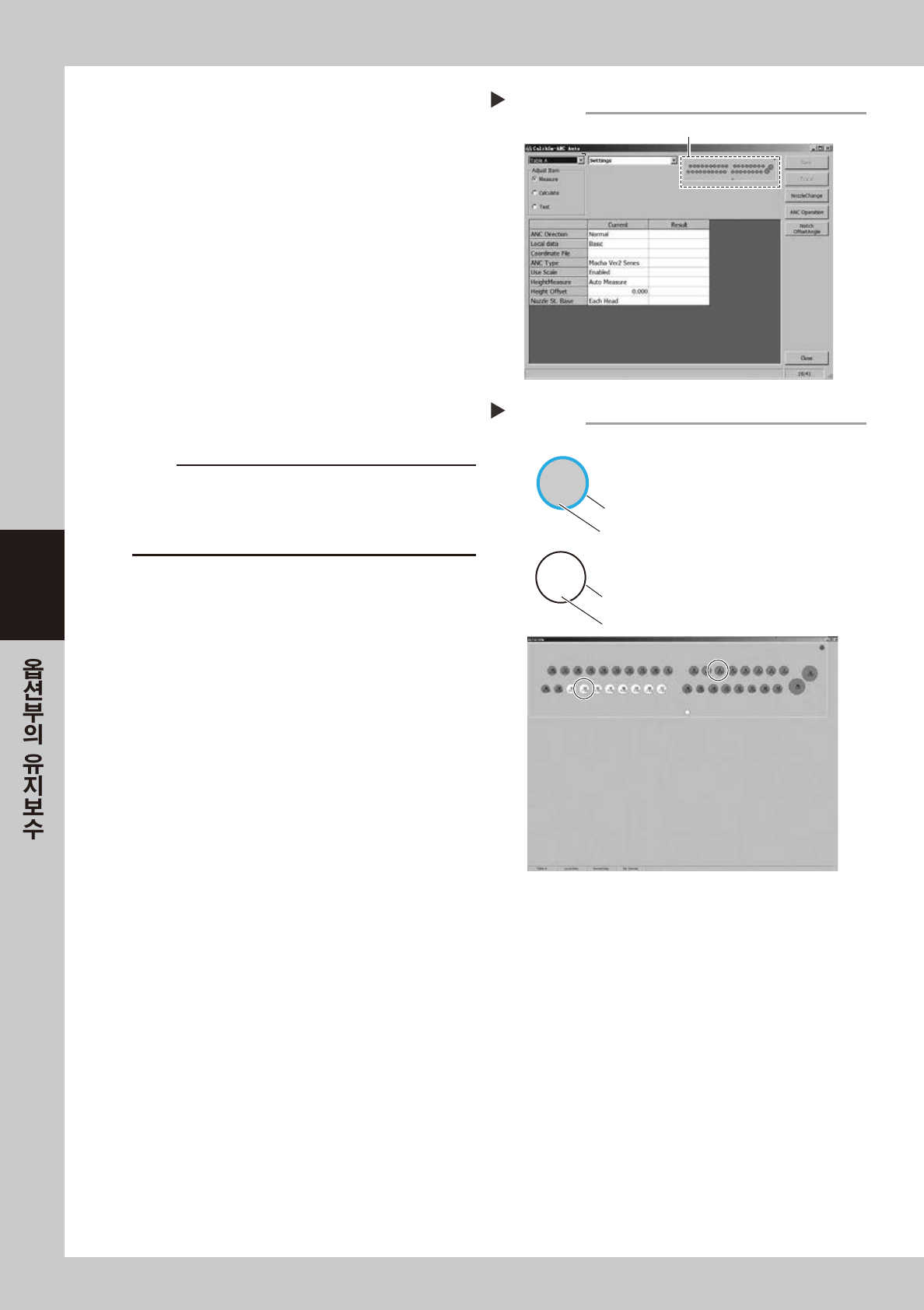 노즐 스테이션 ( 옵션) 을 겸비하고 있는 장비는 , 정기적으로 노즐검지 센서의 상태를 확인할 필요가 있습니