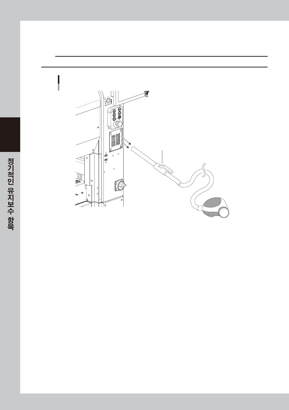 3-23 3 3. 3 .2 장비 배면의 필 터 청소 제 어 부 의 보호 를 위 한 흡 기 필 터 는 장 비 배 면 의 우측에 설 치 되 어 있 습 니 다 . 다음 과 같 은 순 서 대 로 장 비 배 면 의 필 터 를 청 소 해 주 십 시 오 . 1 커버를 오픈합 니다 . 십 자 드라이버 로 커 버 를 고정 하고 있 는 4 군데의 고 정 나사를 풀어 주 십 시 오 . 고 정 나사를 분리 할 필…