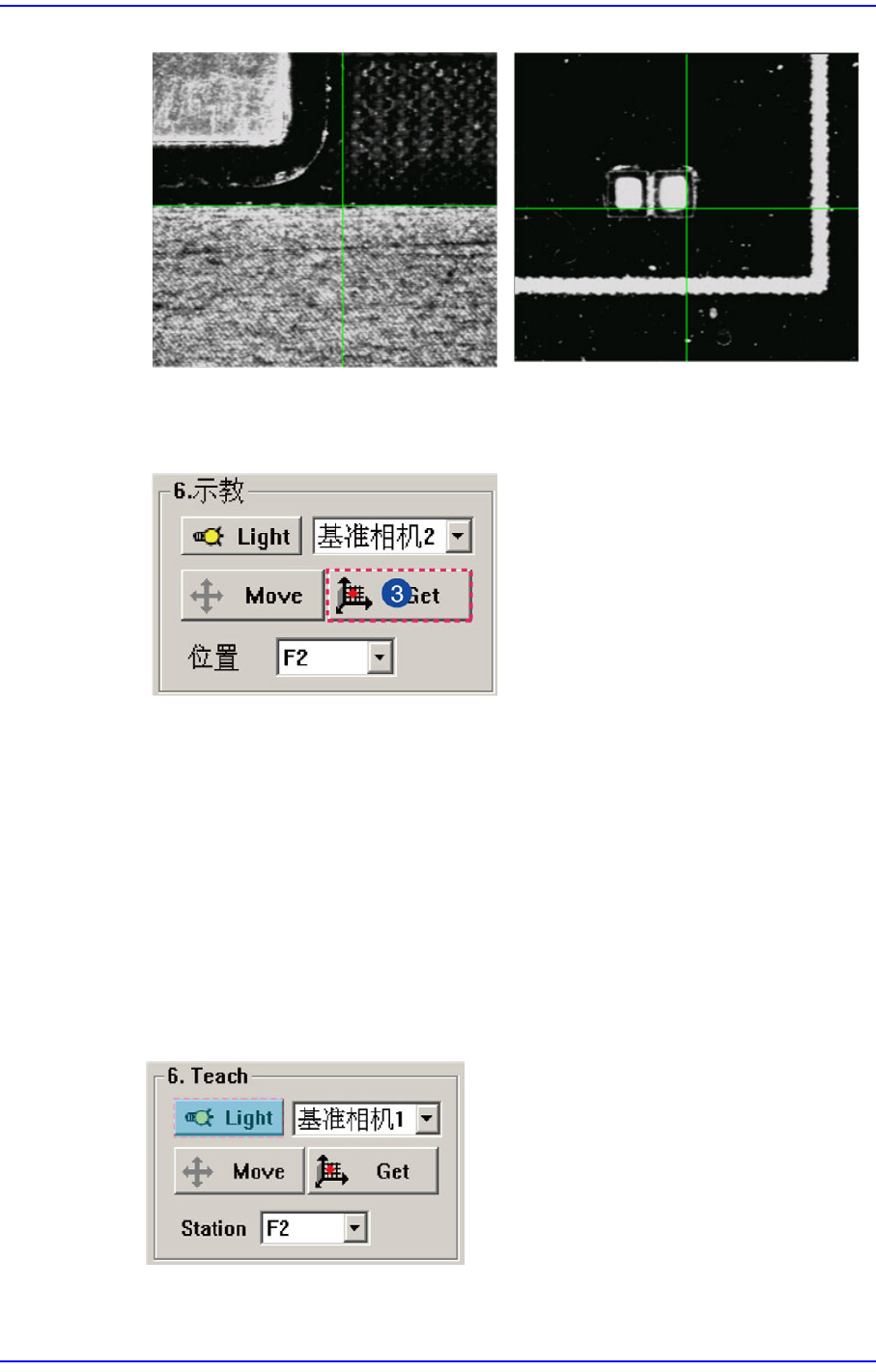 示教PCB上横向,竖向平行位置的2个点中的第二点。示教后,按下” 输入”