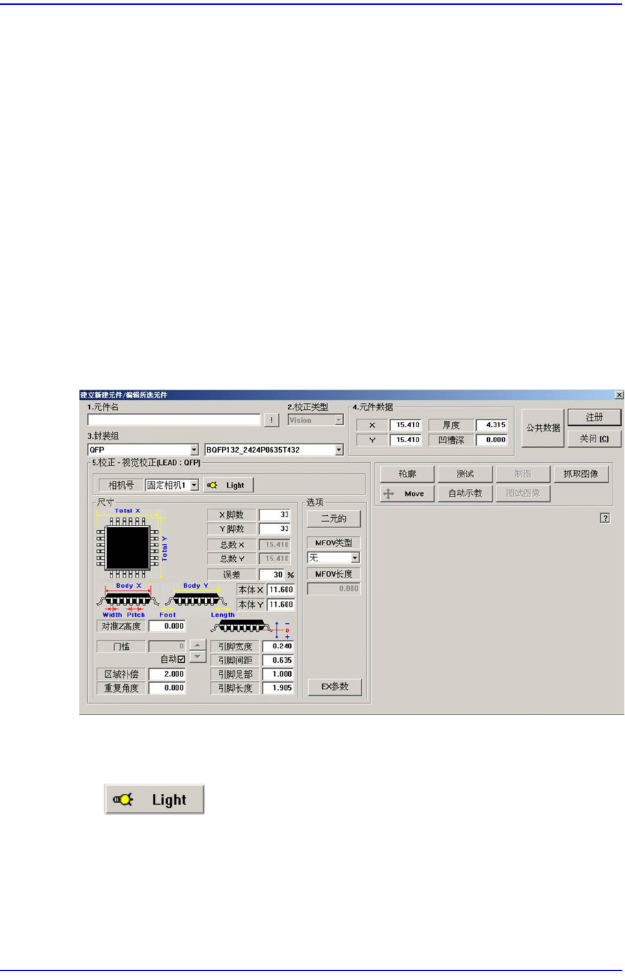 设定识别部品用摄象机的照明度。 详细事项请参照 “7.1.1