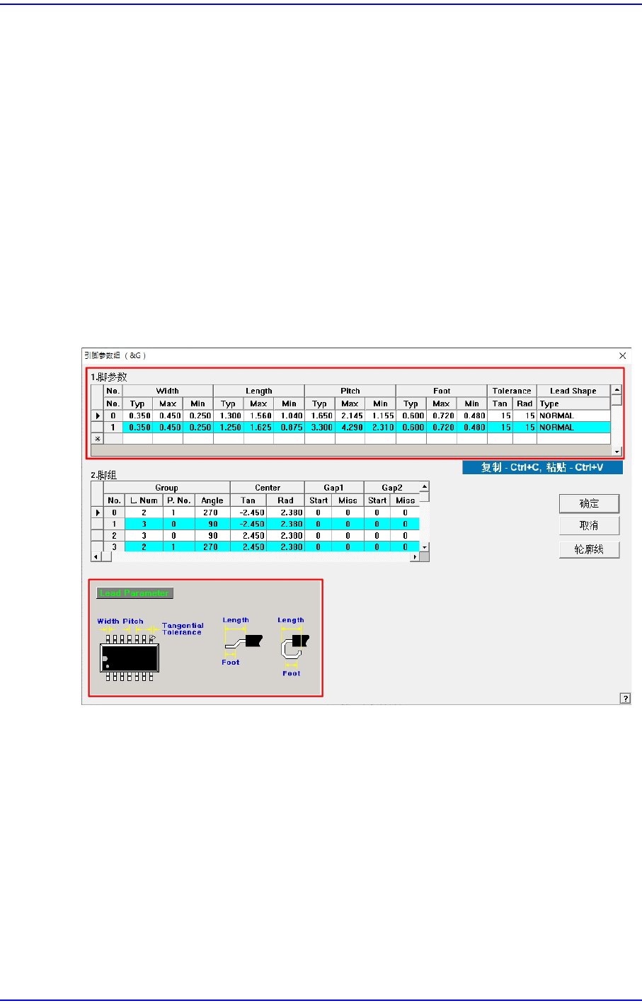 设定本引线到邻接的引线中心的距离-间距。该参数是识别元件时的敏感参