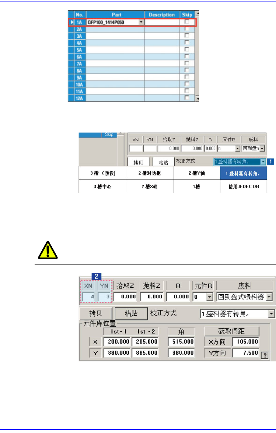 (4) 为了获得准确的托盘设置角度,请将照相机朝第一列下端的角坐标