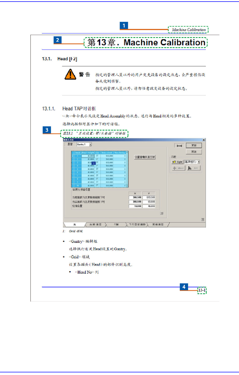 Advanced Chip Shooter DECAN S2 Administrator’s Guide xviii 画面显示 本设备的 MMI 的基本画面如下。 1: 表示主菜单工具栏 2: 显示正在操作中的 PCB 文件名。 3: 表示辅助菜单工具栏。 4: 显示 File 菜单。 ( 新建 , 打开 , 另存为 , 合并元件库 , Show/Hide err or message, W indows T ool) 5: Err…