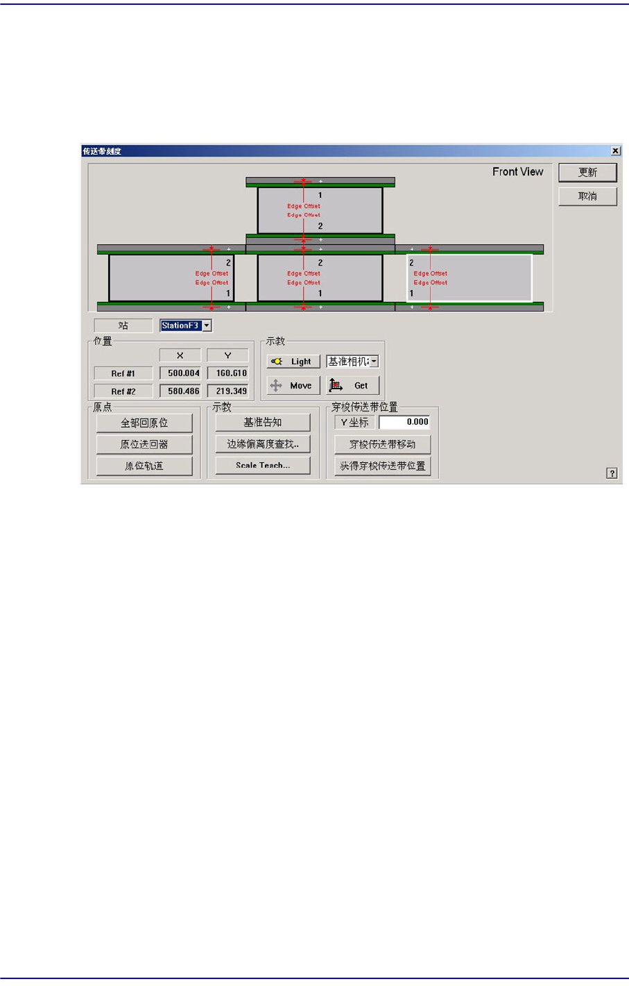 conveyer上预先设置的Fiducial Mark的中心一致。此时,此位置应是所有Gantry