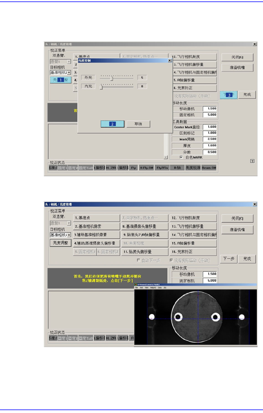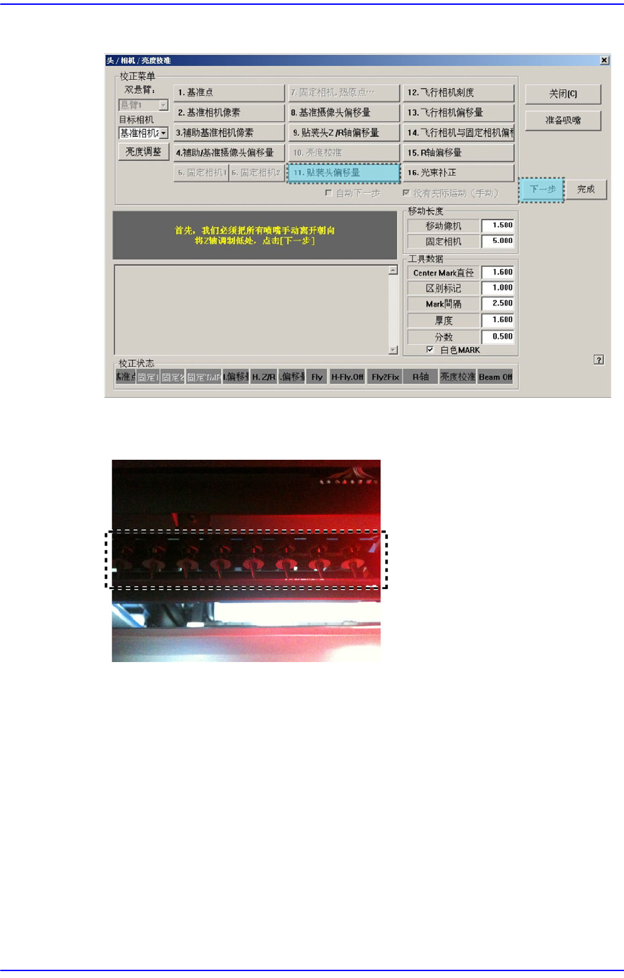 校正时,虽然对当前被选的Head自动更换吸嘴,但要点击<下个>按钮才能执行