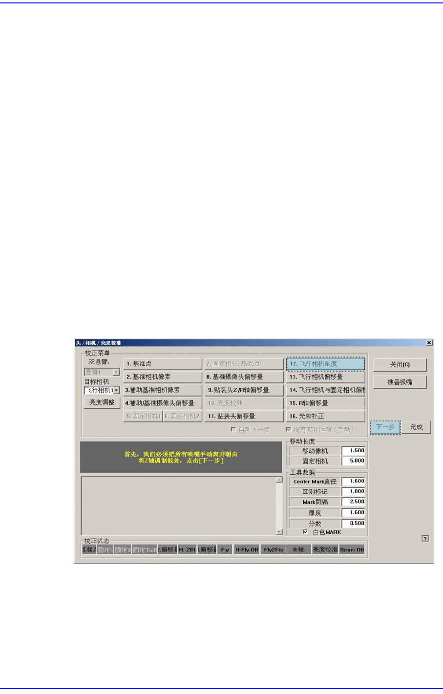 校正时,虽然对当前被选的Head自动更换吸嘴,但要点击<下个>按钮才能执行