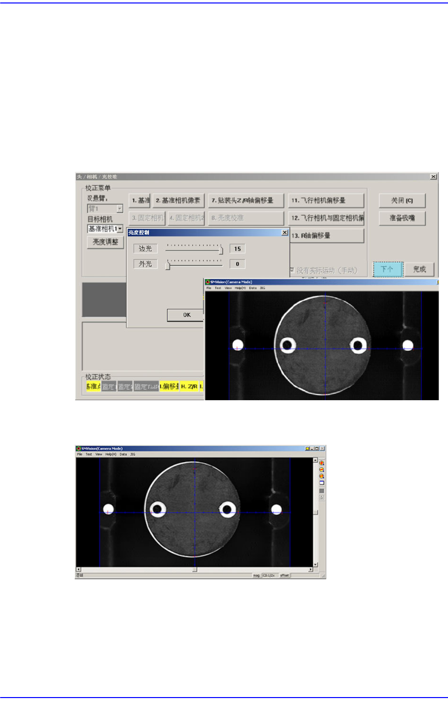 1”点击 <亮度>按钮,在”亮度控制”对话框中SMVison显示的Calibration Tool上