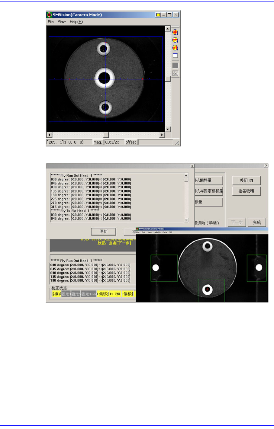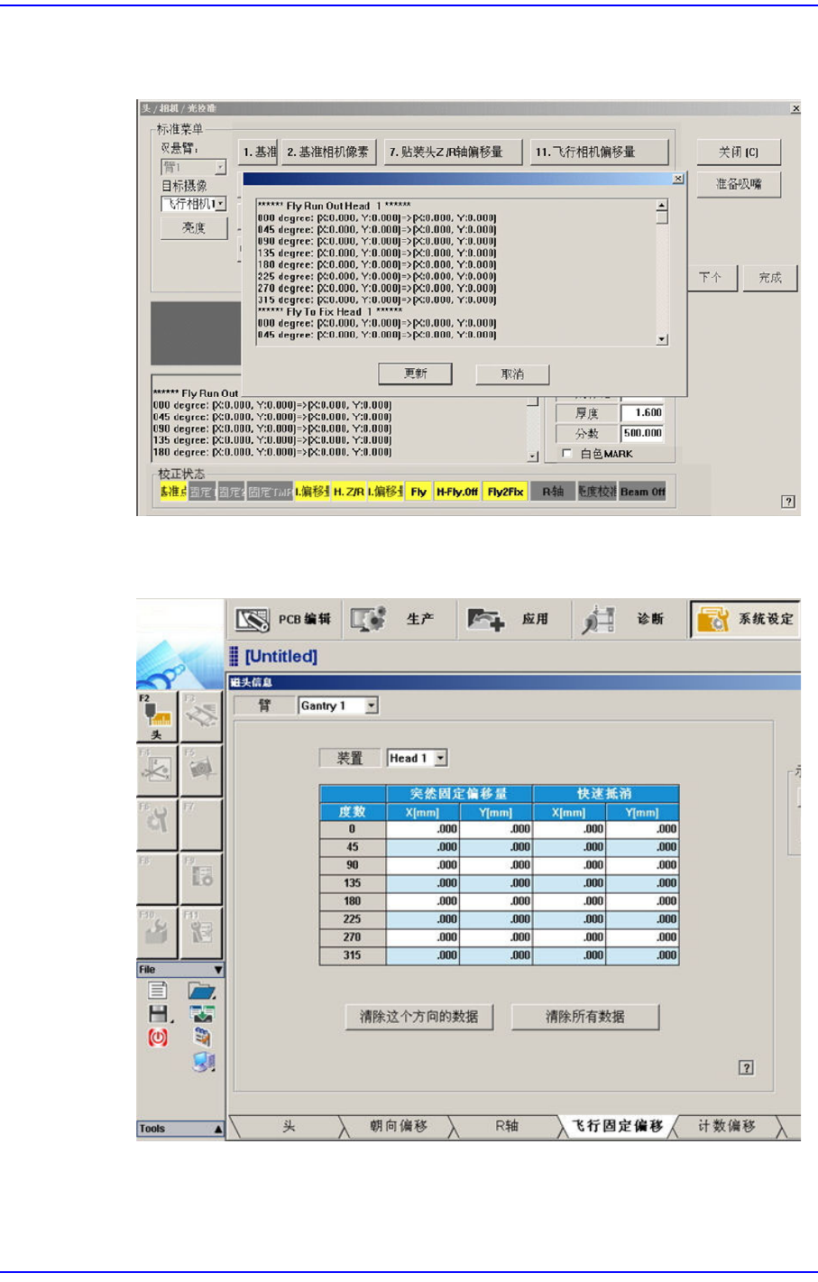 14-77 Machine Calibration 10. 请按照对磁头 1 的校 正方法, 从 Head 2~10 号执行校正。 对 所有磁头正常完成 Calibration 次序, 则如下图显示结果值。 11 . 完成对 Gantry1 的校正后在 <Gantry> 组合框中选择 ’Gantry2’ 以相同的方法执行 校正。 结果值可在 Fly-Fix Offset 对话 框中确认。