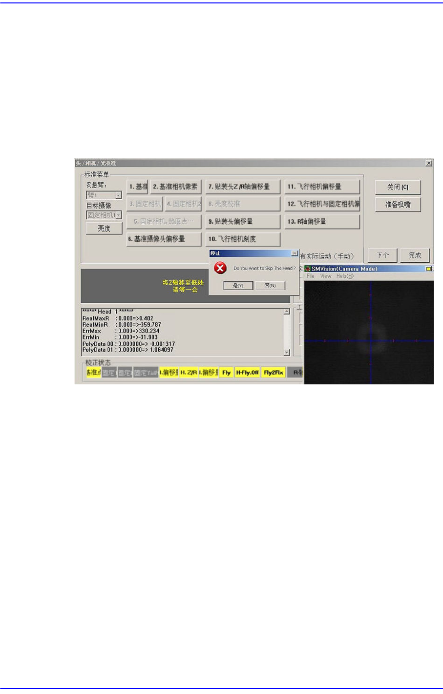 校正时,虽然对当前被选的Head自动更换吸嘴,但要点击<下个>按钮才能执行
