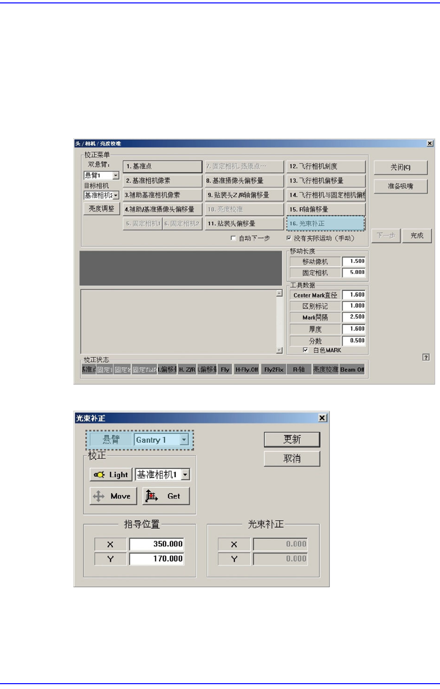 10. 在<Gantry>组合框选择 Gantry2后,按照和 Gantry1相同的方式实行校准。