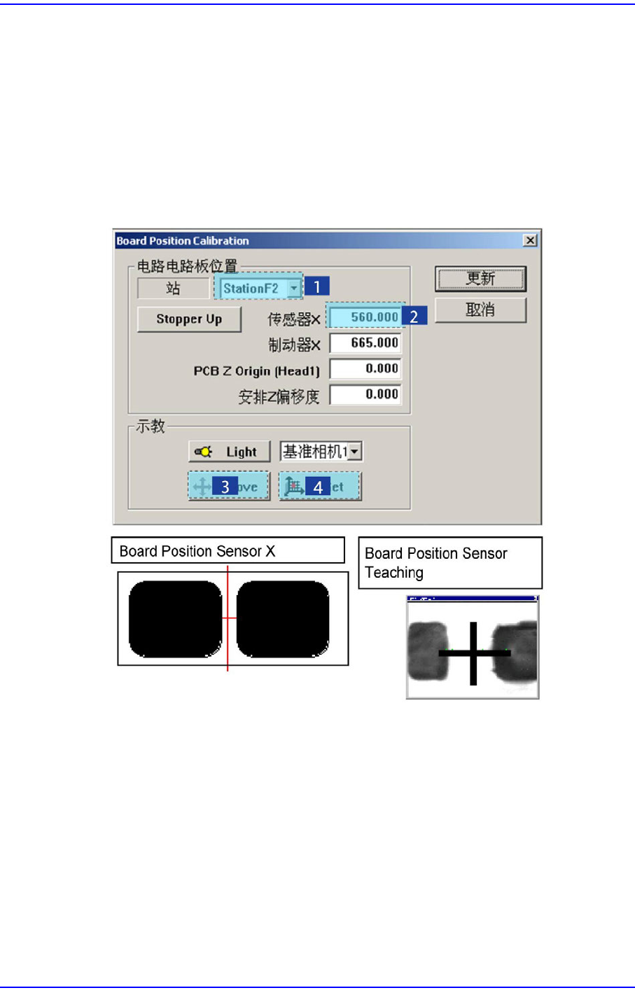 示教Conveyor贴装领域的Stopper位置和Sensor的X位置。