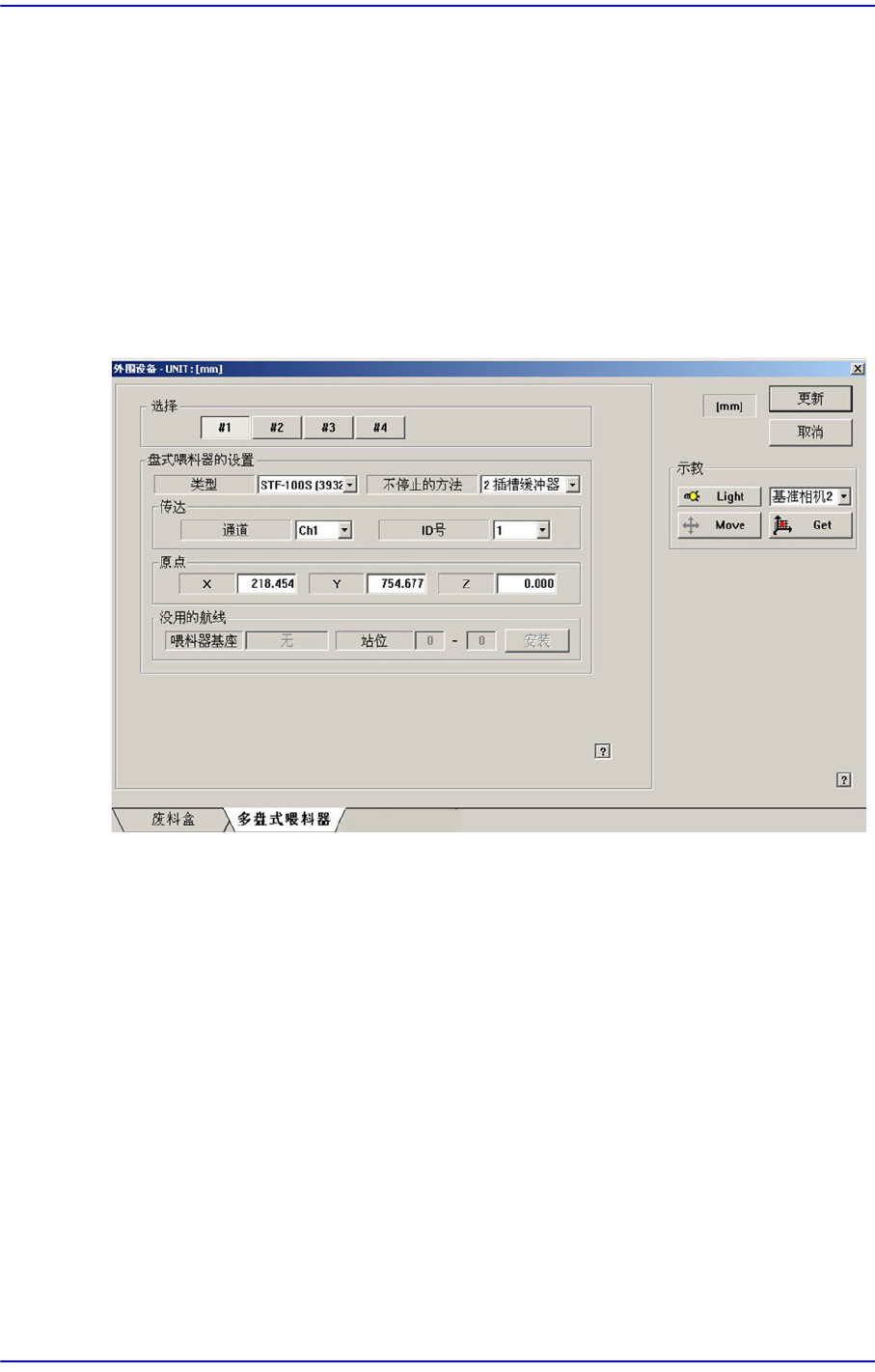 选择的盘式喂料器单位时,设定被该盘式占有的喂料器基座单位和Slot。