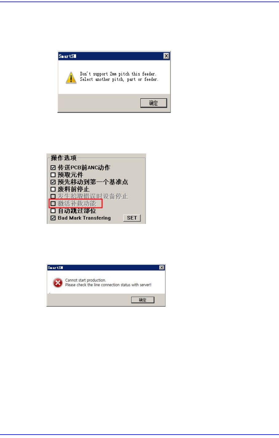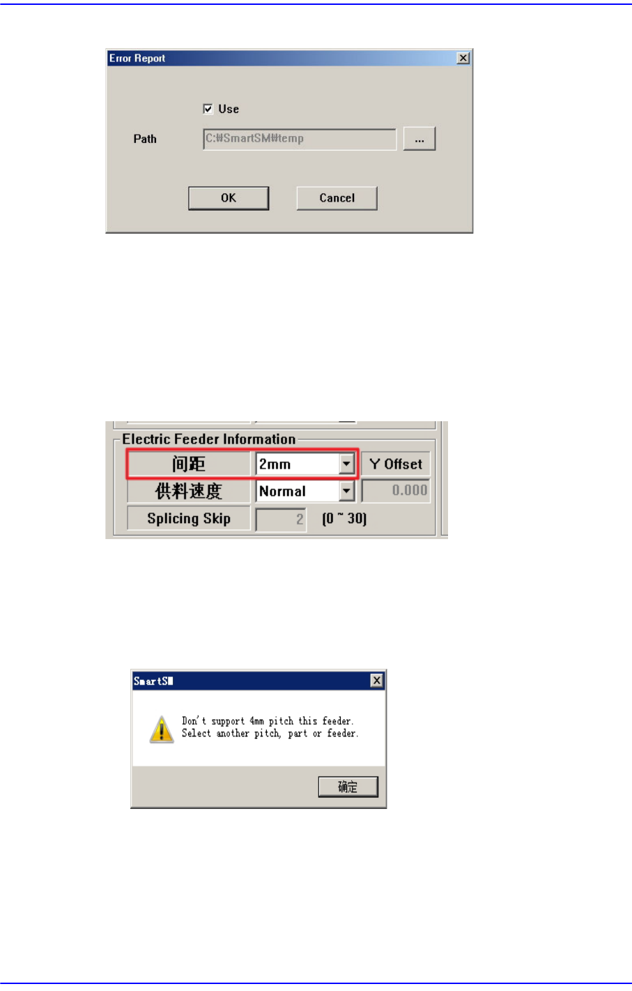 15-48 Advanced Chip Shooter DECAN S2 Administrator’s Guide 图 15.17 “Error Report” 对话框 <Use> 选择框 圈选了该复选框后, 就能使用文件备份功能 。 <Path> 编辑框 设定 MMI 文件的备份路径。 <Ignore Restriction Pitch> 检查框 选择该校验盒后, 将忽视零部件的 Fe…