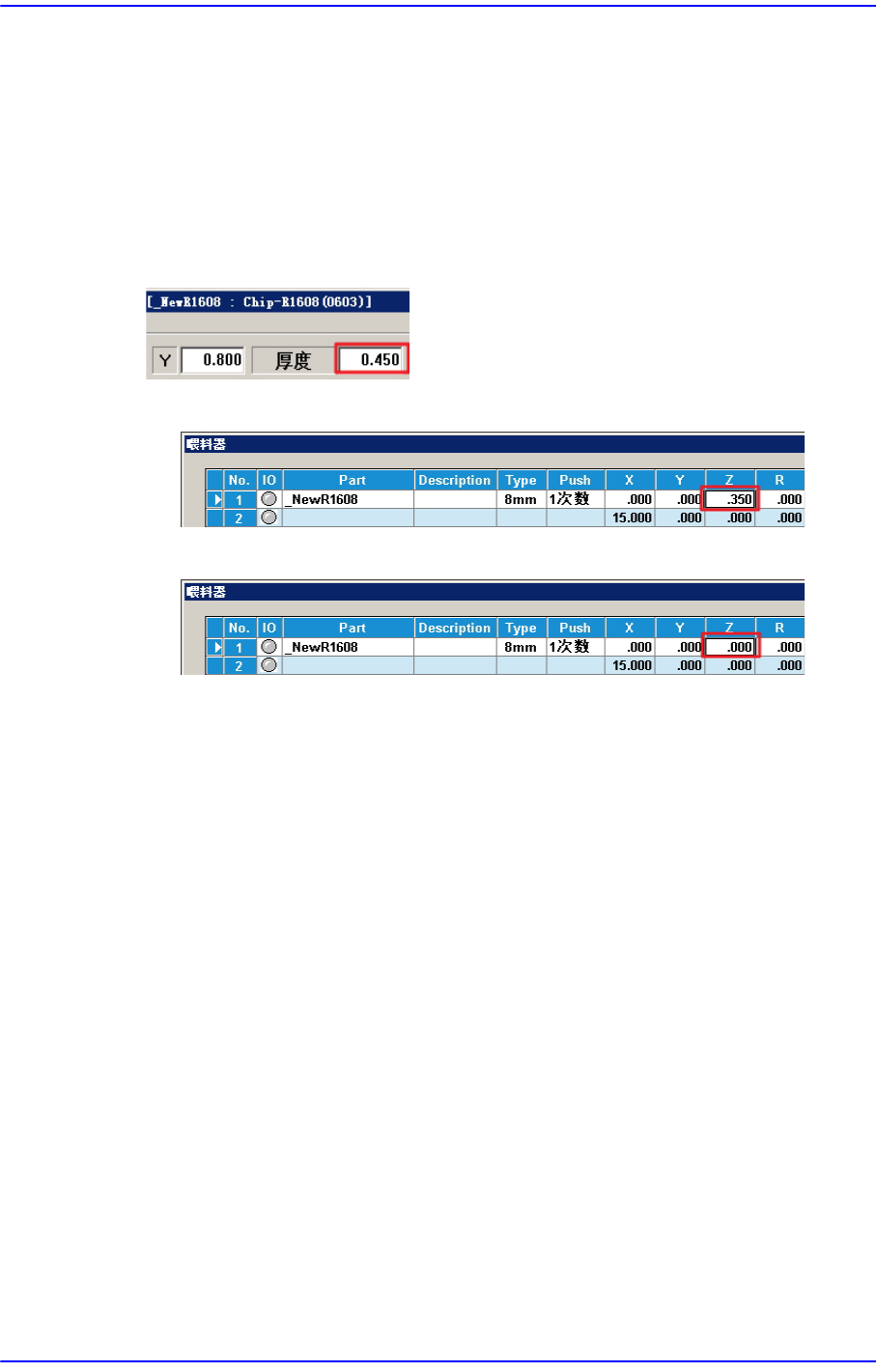 高度会自动反映到Feeder的Z值。(零部件的Pickup高度:零部件厚度(Thickness)
