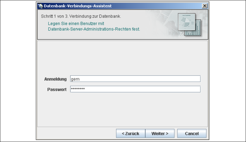 Der Datenbank-Verbindungs-Assistent wird gestartet, wenn keine Verbindung zur Datenbank