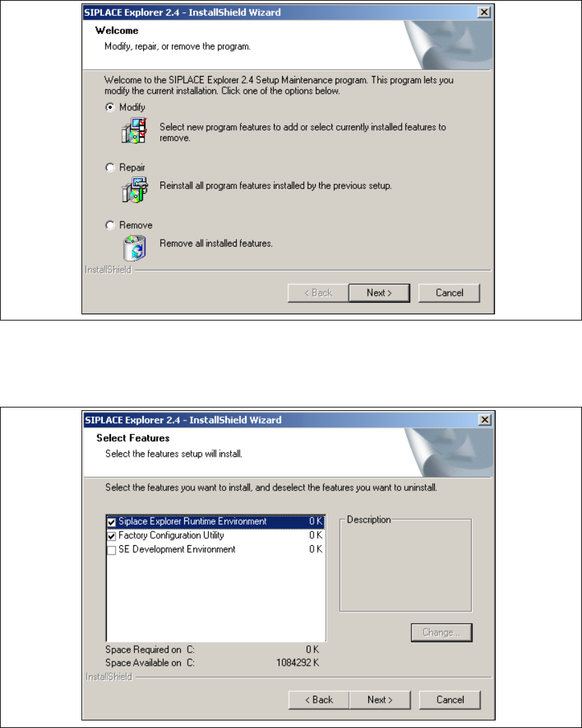 5 Deinstallation Installations- und Konfigurationsanleitung SIPLACE Explorer 5.2 Modify Ausgabe 08/2008 DE 106 → Haben Sie die entsp rechenden Inst allationsopt ionen ausgewählt, klicken Sie die Schalt fläche Next (We it…