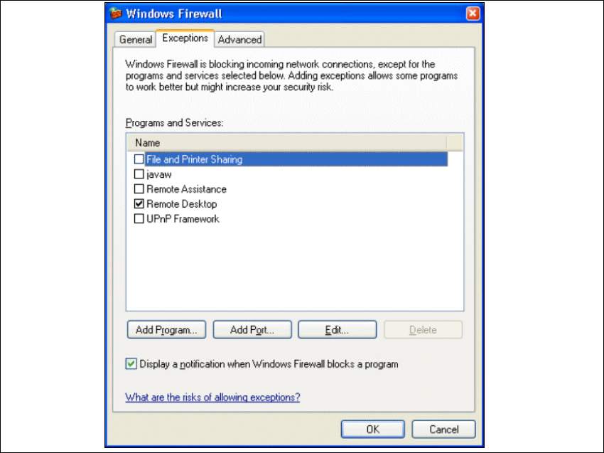 Abb. 3 - 31 Windows Firewall - Exeptions
