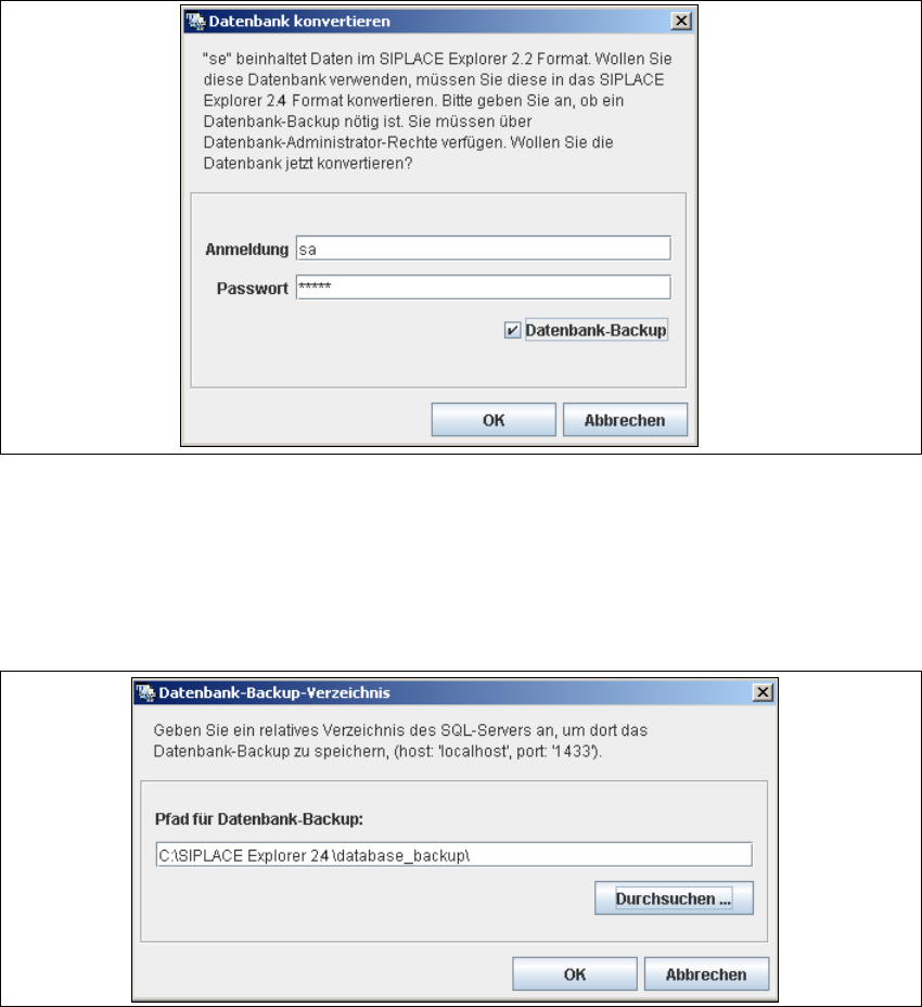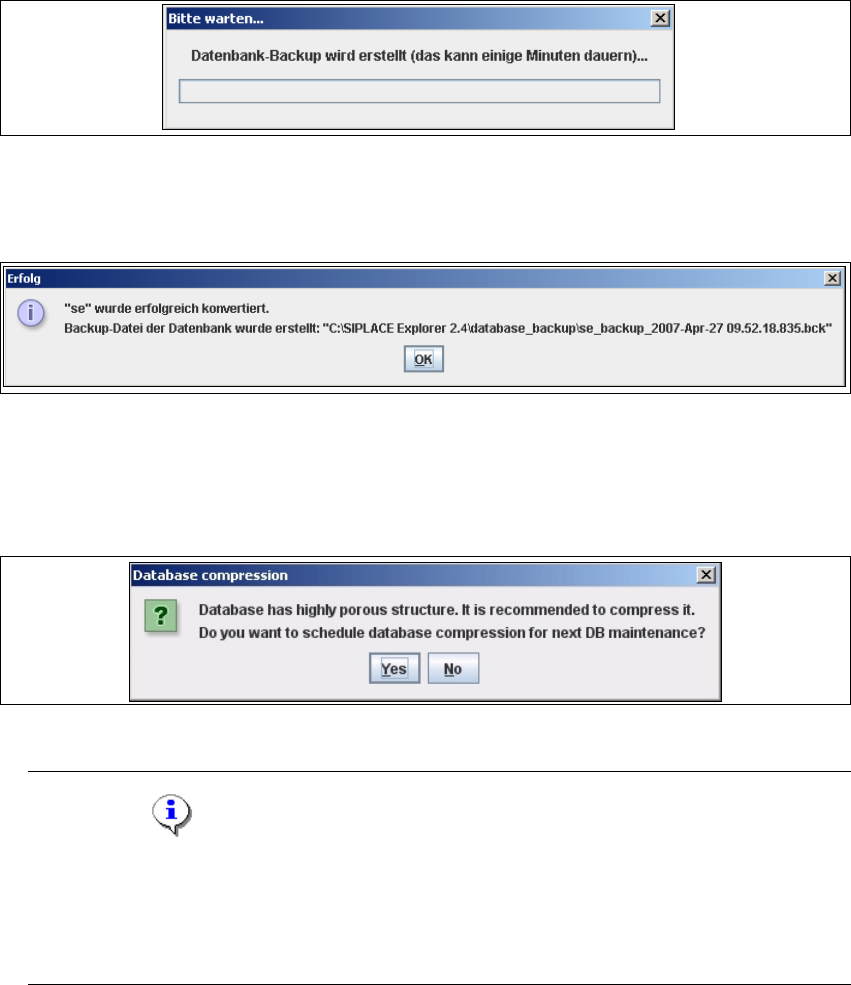 4 Konfiguration Installations- und Kon f igurationsanleitung SIPLACE Explorer 4.1 Standard Monitoring Application (Überwachungsanwendun g) Ausgabe 08/2008 DE 70 4 Abb. 4 - 15 Datenbank Backup → Nach erfolgreicher Konvert…