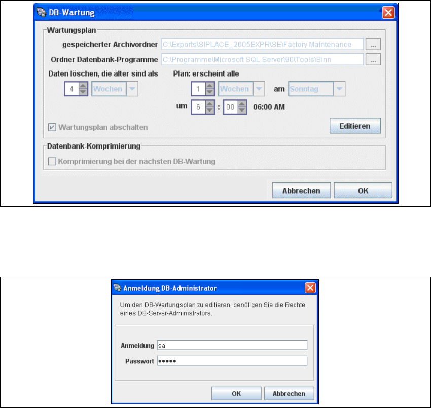 → Die Eingabefelder im Dialogfenster DB-Wartung werden aktiv geschalten. Sie können
