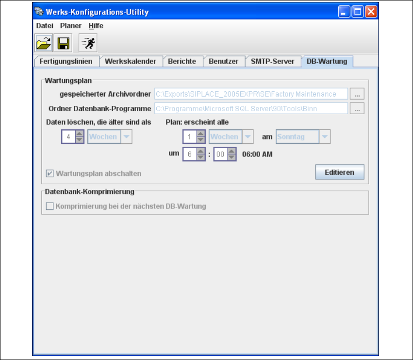 Definieren Sie hier die Wartung für die Werks-Datenbank. 4