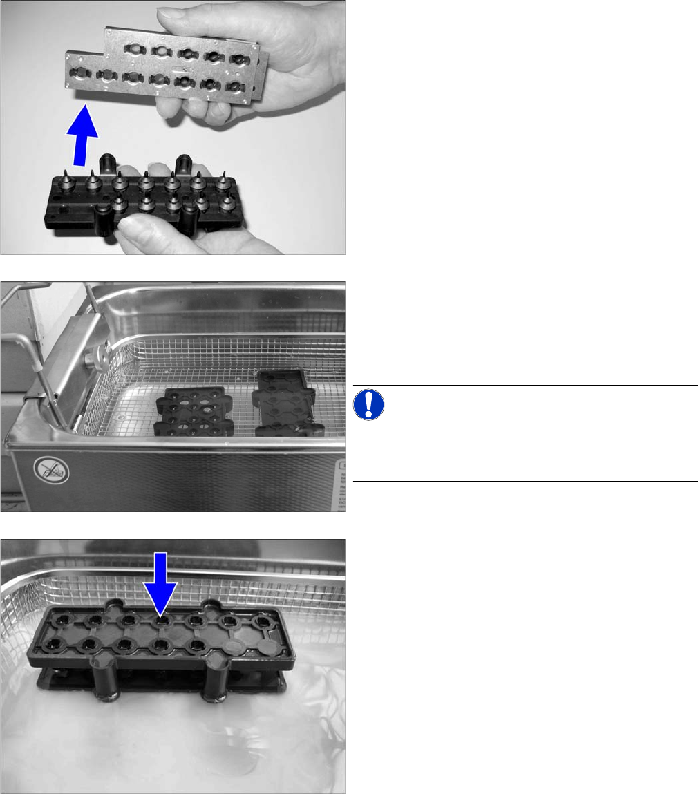 ► Die Pipettenmagazine dürfen nicht in die Reinigungsflüssigkeit gelegt werden.