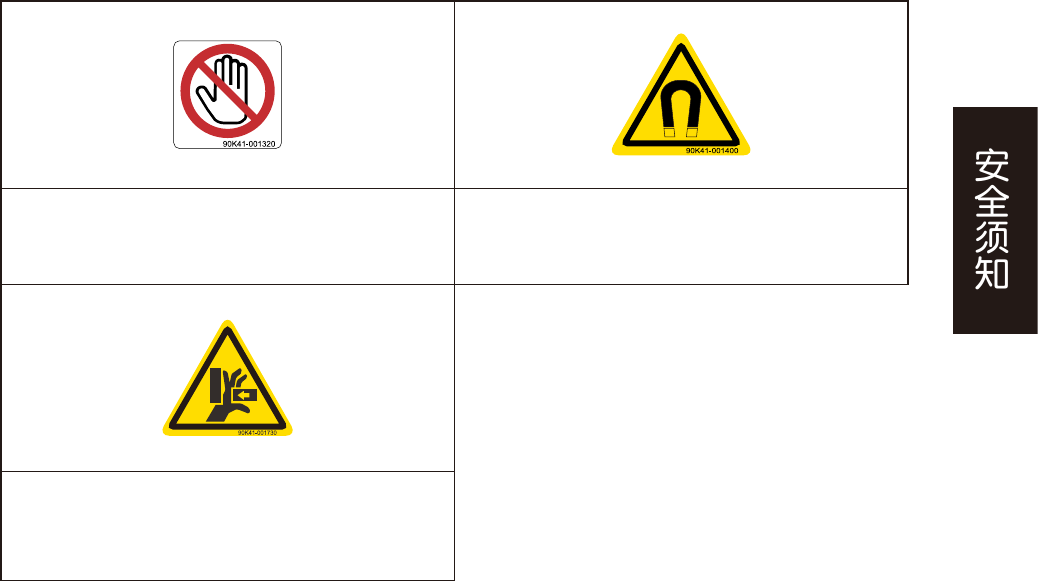 x ■ 标贴张贴位置 警告标贴 其它 系统控制箱 伺服控制箱 一次性换料车 ■ 控制箱顶面 ■ 料车顶面 95204-N9-00
