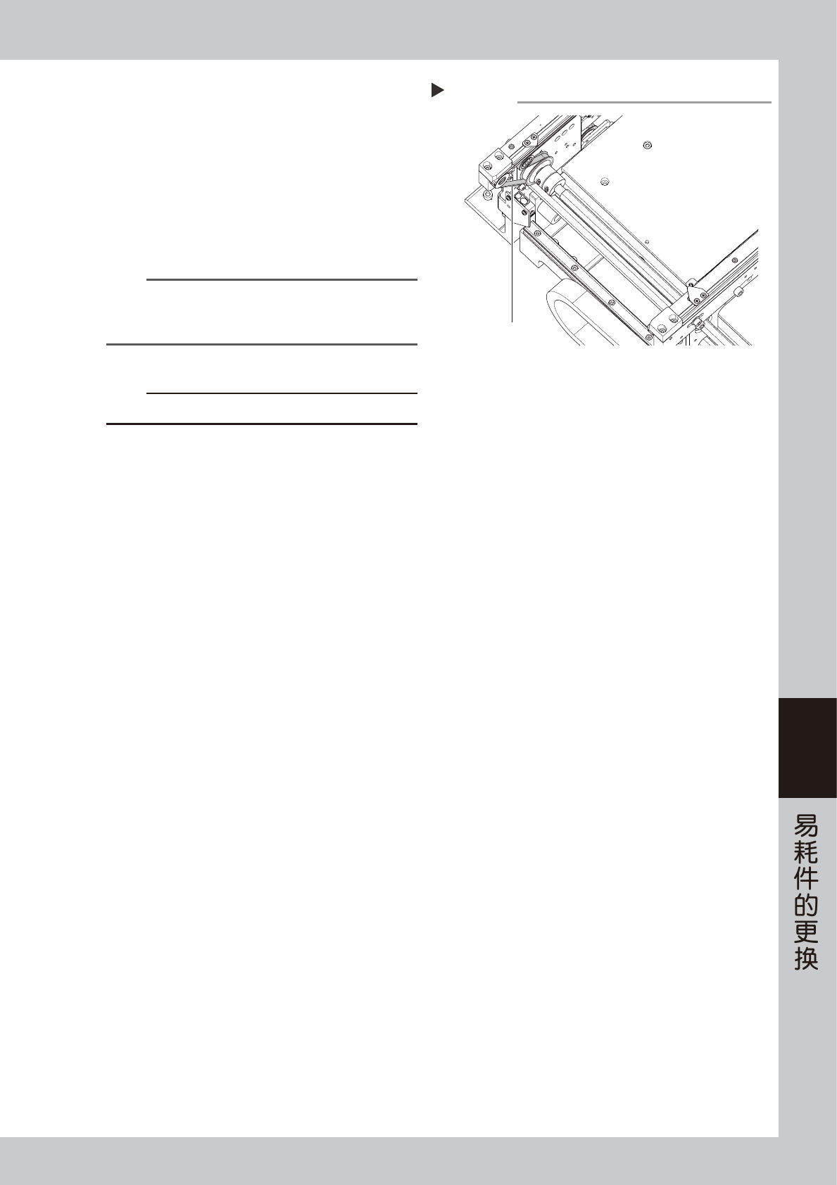 6-6 6 5 使联轴器与驱动传送带的带轮分离。 1. 用内六角扳手 (2.5) 拧松联轴器部的螺栓。 2. 使联轴器与驱动用带轮分离,以便使传送带可 以从空出的缝隙中取出。 6 将传送带取出。 将传送带从联轴器与驱动传送带的带轮之间空出的 空隙中取出。 7 清洁传送带导轨部与带轮。 1. 用吸尘工具 ( 选购件 ) 清除传送带导轨与传感 器等部位粘附的传送带磨损粉。 2. 带轮表面若有传送带的磨损粉变黑固着时,可 用塑料刮片等除去。 …