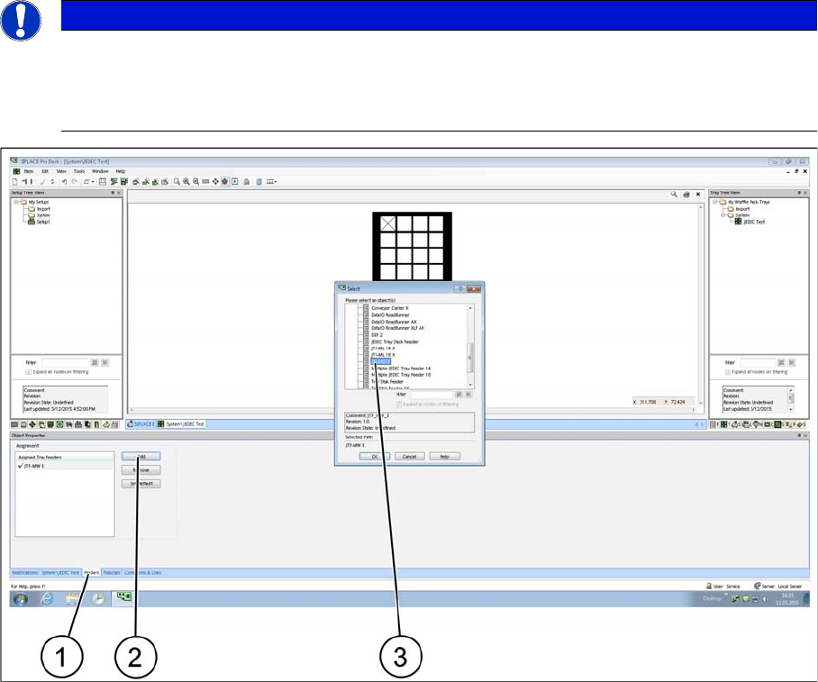 ► After defining a JEDEC tray you must assign it to a feeder. Select the relevant SIPLACE JTF feeder