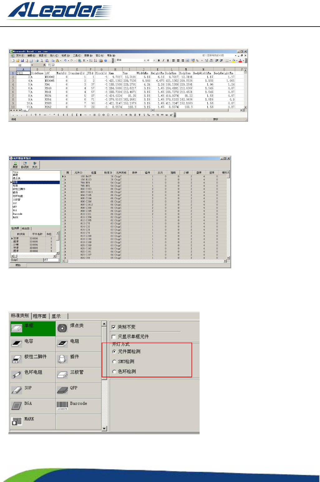 地址: 东莞市东 城区牛山 金鸡岭兴 华工 业园 F 栋 电话: +8 6-400-1 189-123 E-m ail: aoi@aleade r .hk Http:// www.aleader.hk TEL:+86 - 400 - 1189 - 123 E - mail:aoi@aleader.hk Page: 111 of 199 (1 1) 导出 元件数据 主要用来导出元件坐 标数据 ; (12) 元件覆盖 率 统计出所有元件标准…