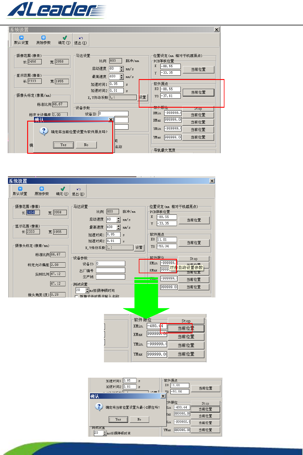 地址: 东莞市东 城区牛山 金鸡岭兴 华工 业园 F 栋 电话: +8 6-400-1 189-123 E-m ail: aoi@aleade r .hk Http:// www.aleader.hk TEL:+86 - 400 - 1189 - 123 E - mail:aoi@aleader.hk Page: 183 of 199 设置六、软件限位设 置: 操作如下:打开系统 设置菜单,鼠标置 于软件限位各 方向输入栏内,会提 示“…