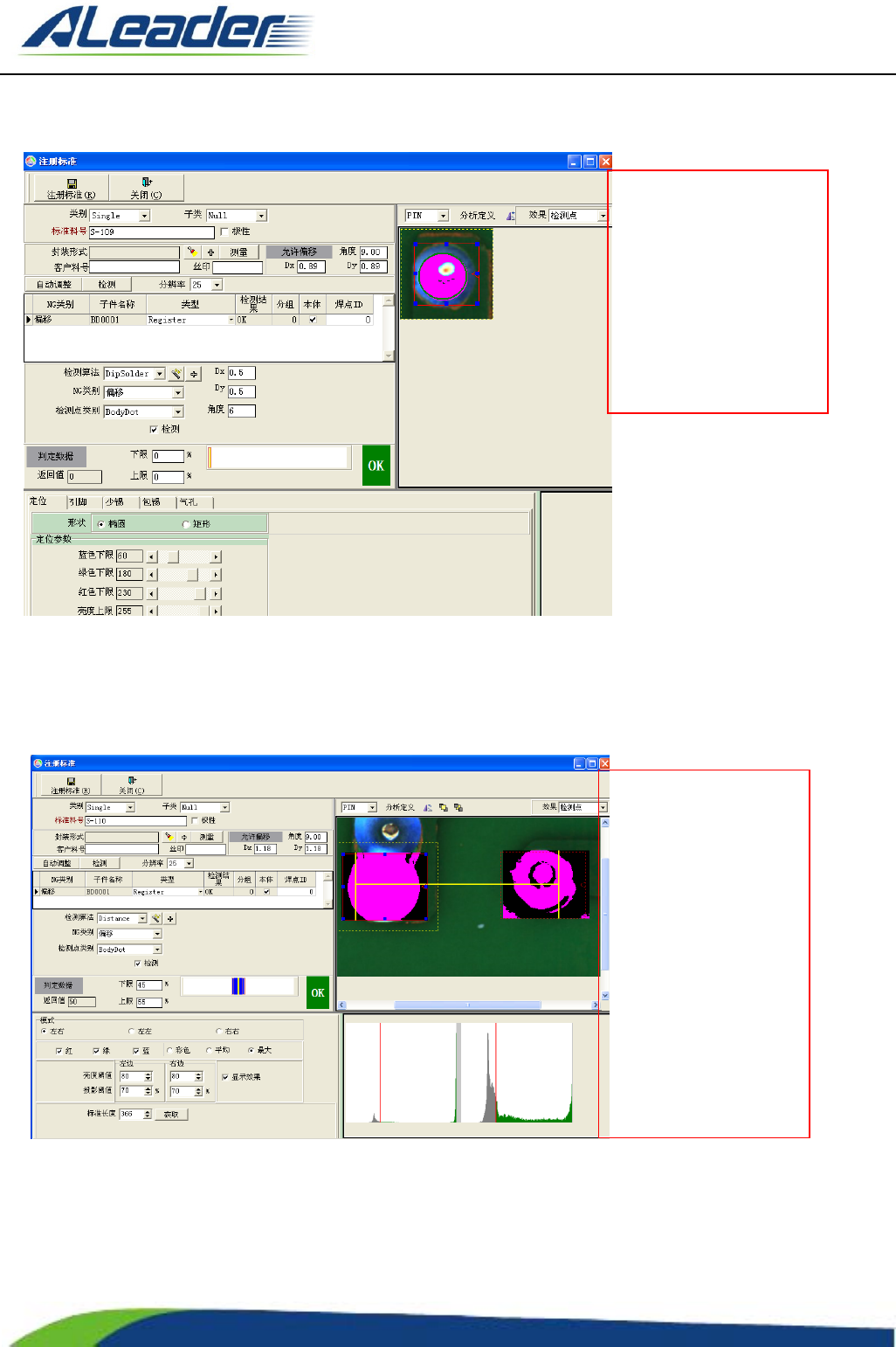 地址: 东莞市东 城区牛山 金鸡岭兴 华工 业园 F 栋 电话: +8 6-400-1 189-123 E-m ail: aoi@aleade r .hk Http:// www.aleader.hk TEL:+86 - 400 - 1189 - 123 E - mail:aoi@aleader.hk Page: 43 of 199 3.2.5 Dif fer 算法 左 图 为 ” Dam a g ed” 算 法 的 电 极 检 测 页…