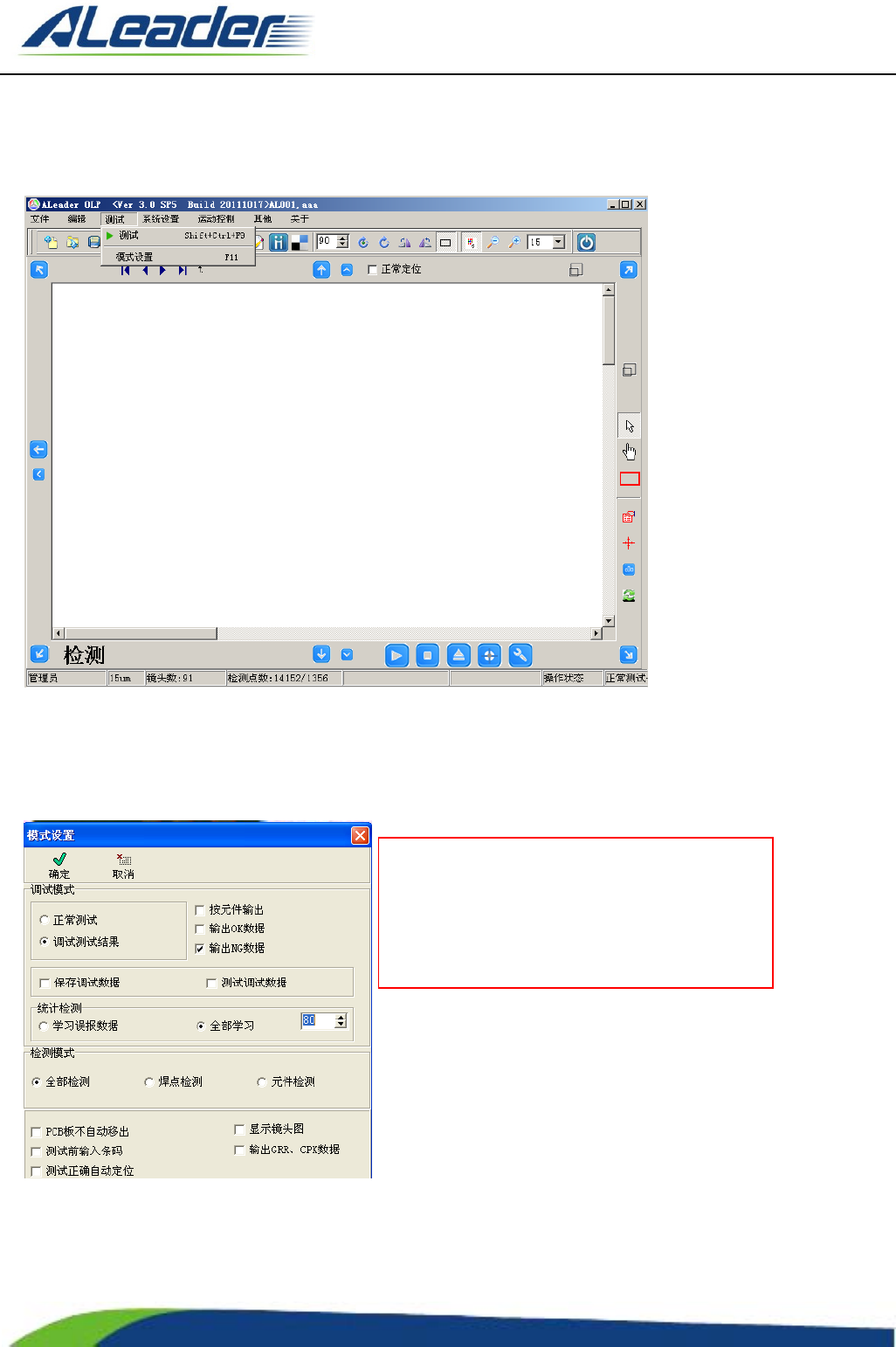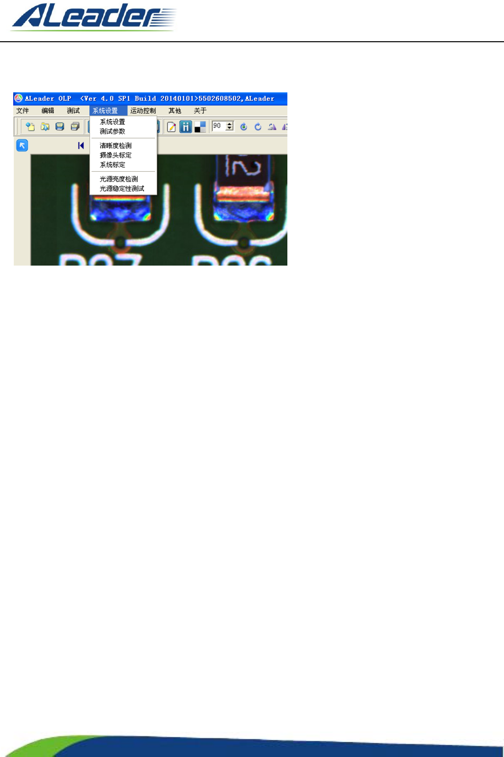 地址: 东莞市东 城区牛山 金鸡岭兴 华工 业园 F 栋 电话: +8 6-400-1 189-123 E-m ail: aoi@aleade r .hk Http:// www.aleader.hk TEL:+86 - 400 - 1189 - 123 E - mail:aoi@aleader.hk Page: 97 of 199 3.6.2.5 [ 系 统设 置 ] 菜 单 下功 能 (1) 系统设置 见 3.3.1 (2) 测试参…
