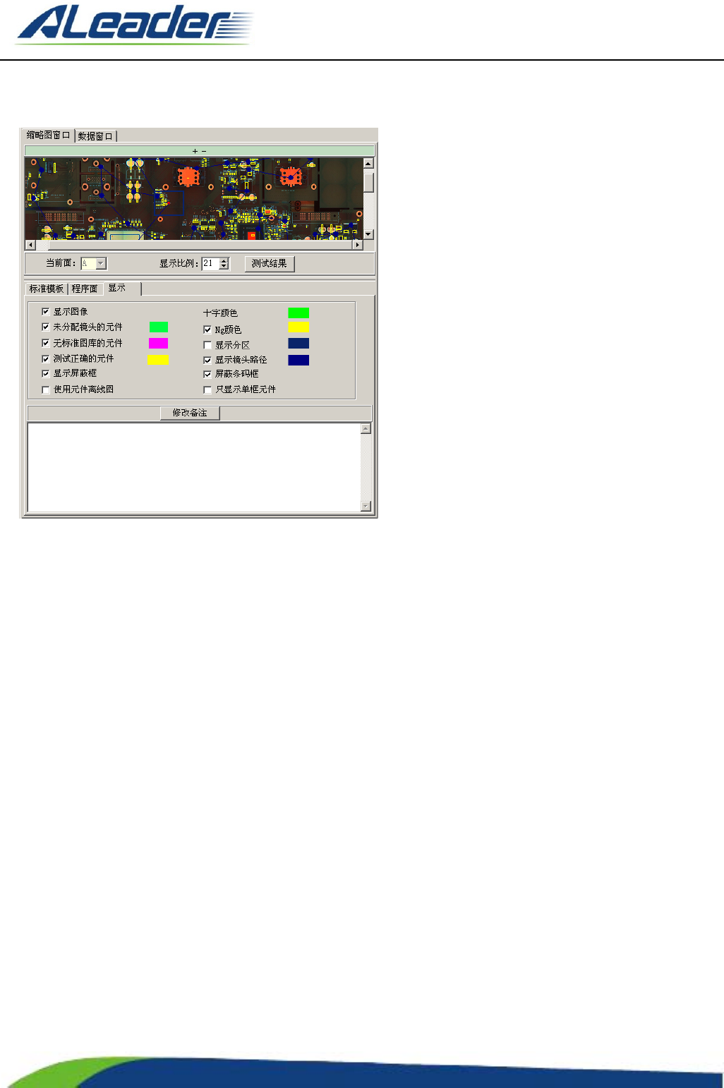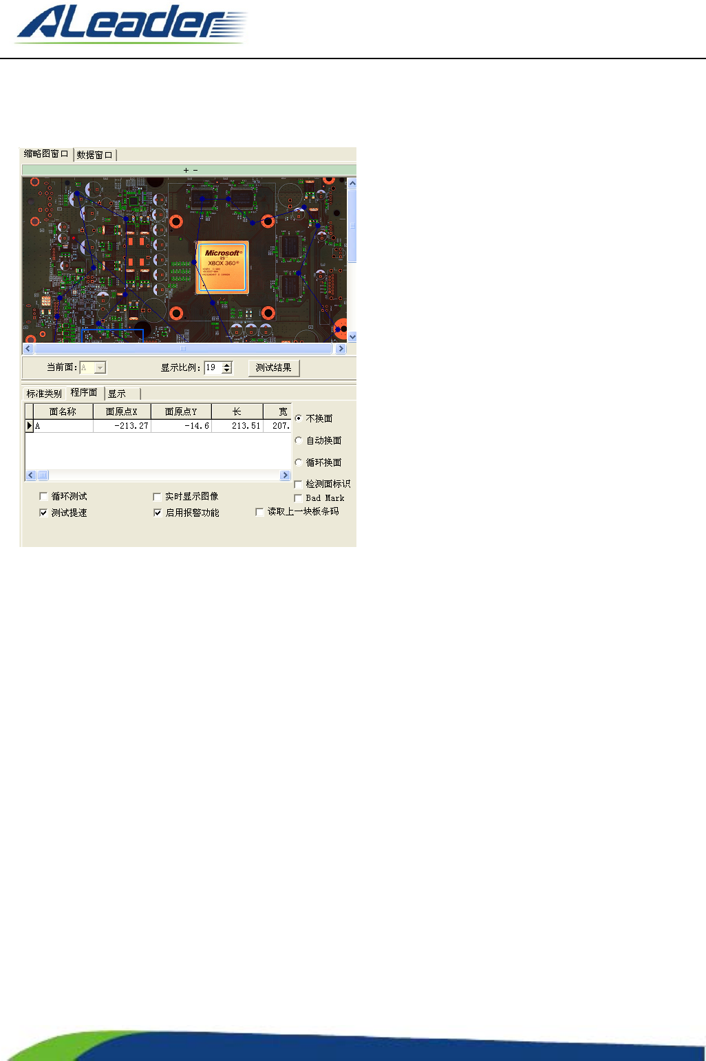 地址: 东莞市东 城区牛山 金鸡岭兴 华工 业园 F 栋 电话: +8 6-400-1 189-123 E-m ail: aoi@aleade r .hk Http:// www.aleader.hk TEL:+86 - 400 - 1189 - 123 E - mail:aoi@aleader.hk Page: 106 of 199 3.6.2.12 缩 略图 窗 口之 [ 程序 面 ] (1) 不换面 : 只测 当前面, 不换面 ;…