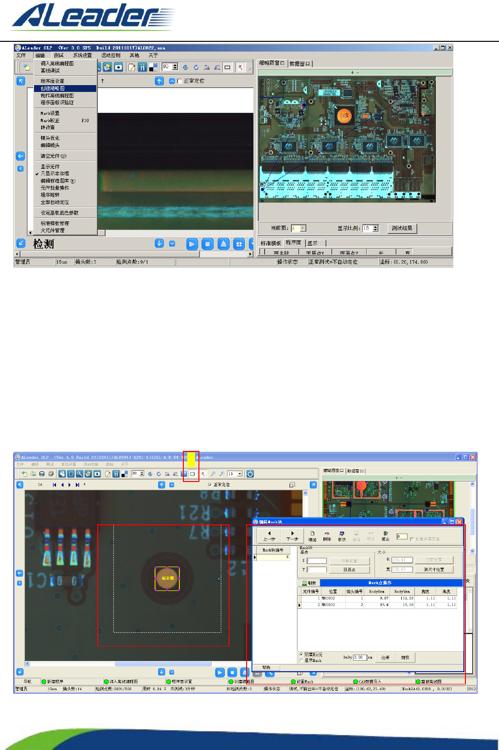 地址: 东莞市东 城区牛山 金鸡岭兴 华工 业园 F 栋 电话: +8 6-400-1 189-123 E-m ail: aoi@aleade r .hk Http:// www.aleader.hk TEL:+86 - 400 - 1189 - 123 E - mail:aoi@aleader.hk Page: 15 of 199 注意 : 1. Mark 较正方 式 , 共有四种 : 图像 , 重心, 椭圆, 矩形 ; 常用图像与重…