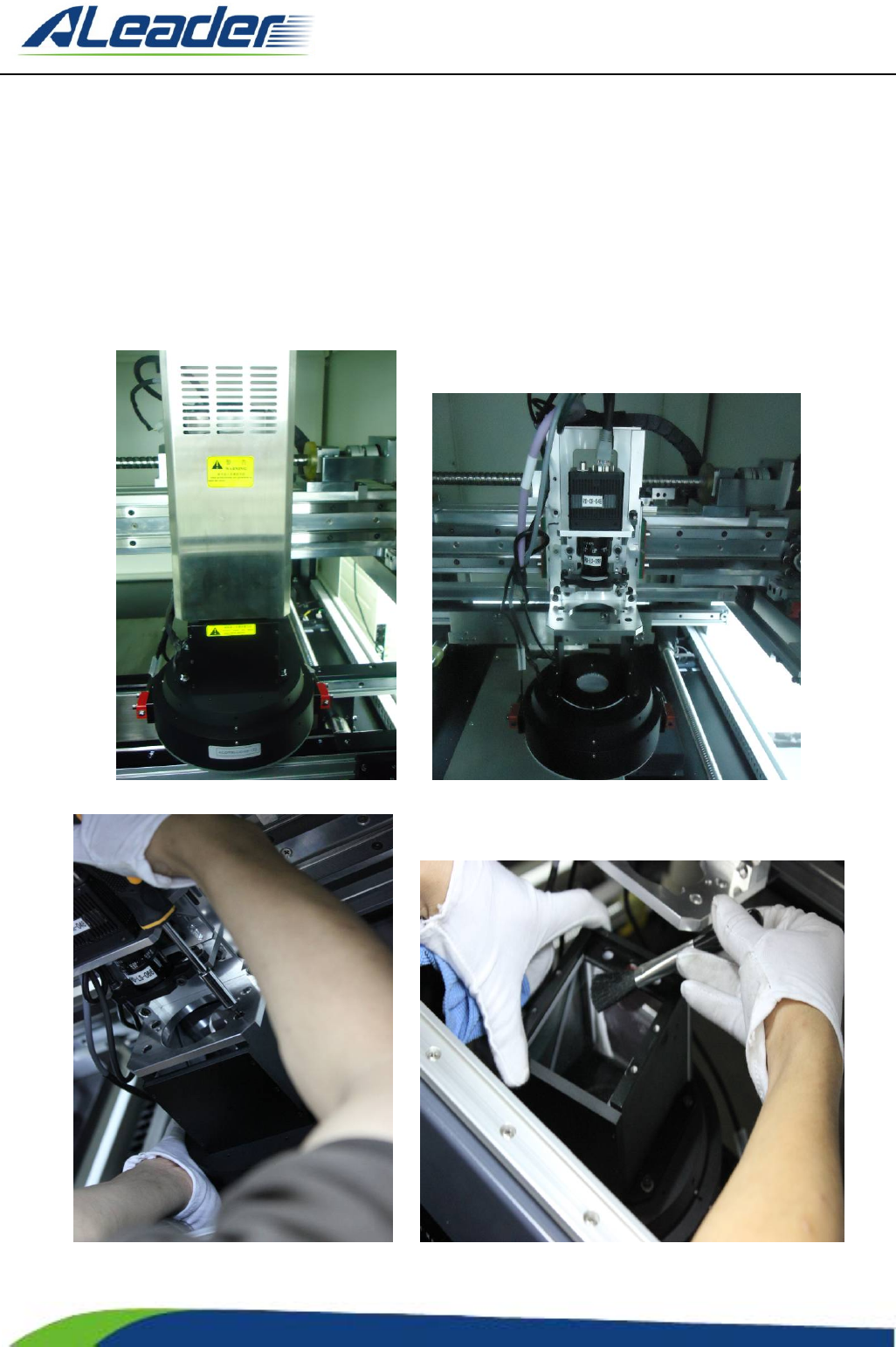 地址: 东莞市东 城区牛山 金鸡岭兴 华工 业园 F 栋 电话: +8 6-400-1 189-123 E-m ail: aoi@aleade r .hk Http:// www.aleader.hk TEL:+86 - 400 - 1189 - 123 E - mail:aoi@aleader.hk Page: 150 of 199 图 4-1 8 吹气球清洁镜面灰尘 图 4-19 清洁液渗入清洁布 图 4-20 清洁光源玻璃镜片 图…