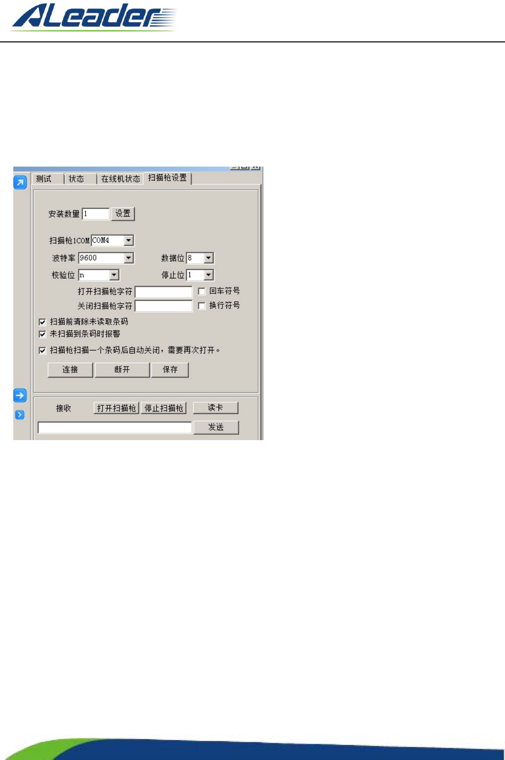 码枪,接着点击“打开扫描枪”按钮将打开条码枪,如设置正常,条码枪的扫描灯将开始工作;如需要关闭条码