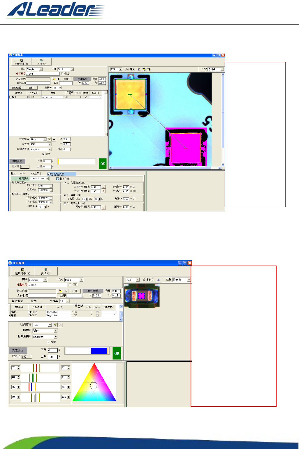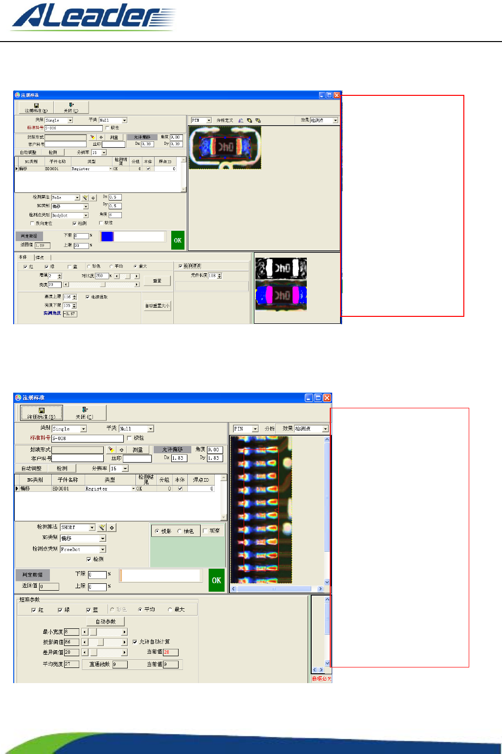 地址: 东莞市东 城区牛山 金鸡岭兴 华工 业园 F 栋 电话: +8 6-400-1 189-123 E-m ail: aoi@aleade r .hk Http:// www.aleader.hk TEL:+86 - 400 - 1189 - 123 E - mail:aoi@aleader.hk Page: 54 of 199 3.2.25 SIZ E 算法 3.2.26 TOC 算法 左 图 为 ”SIZE” 算 法 的检测示意…