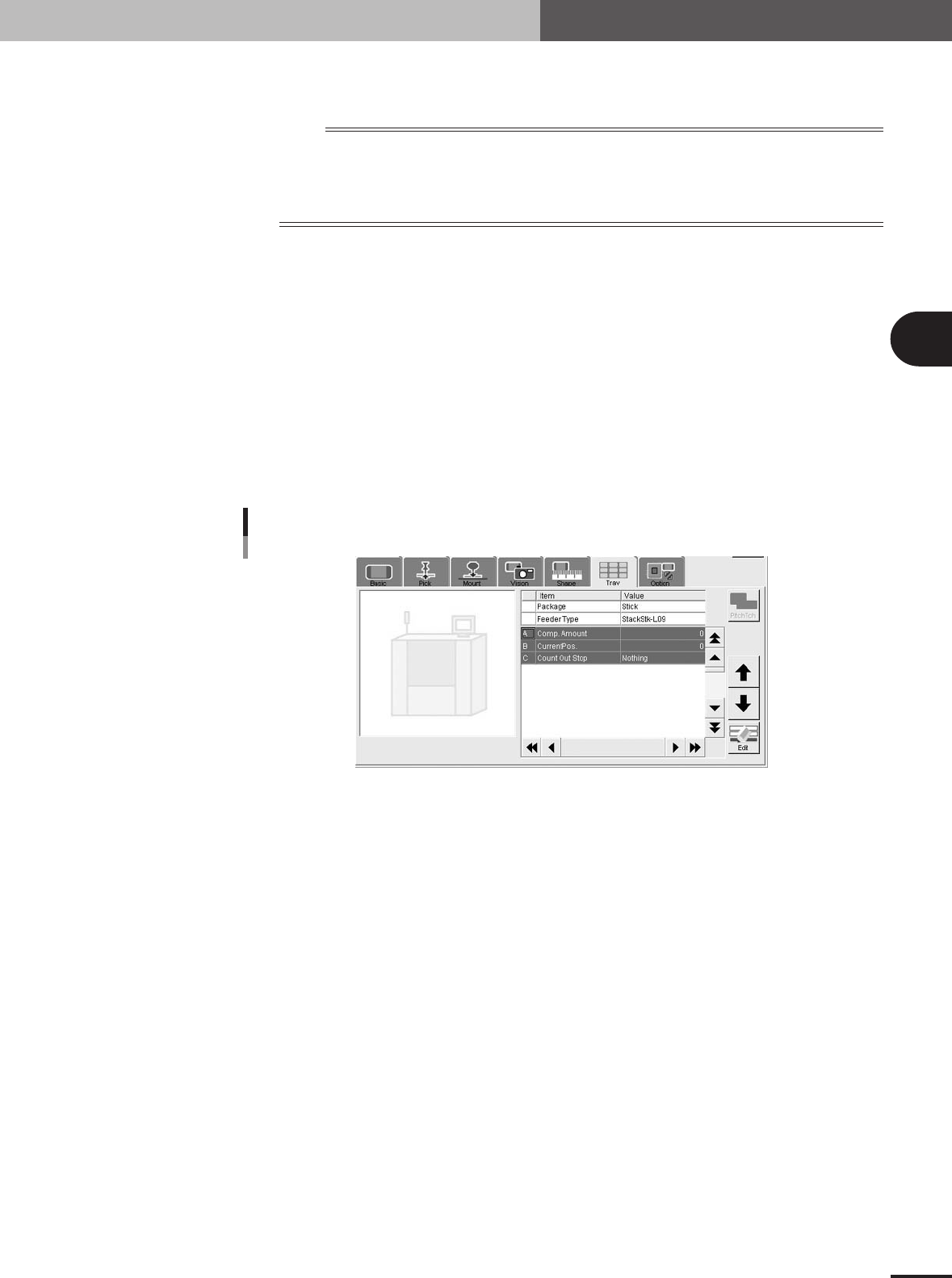 When the stick feeder needs to be installed at a particular position, you cannot make off-line settings. Be sure to