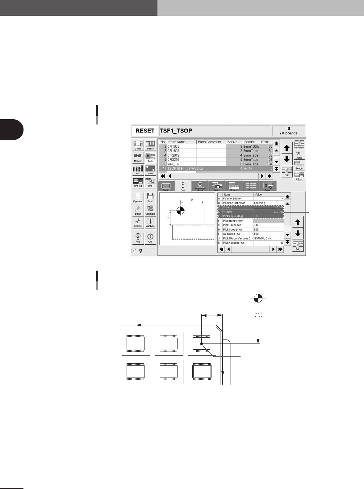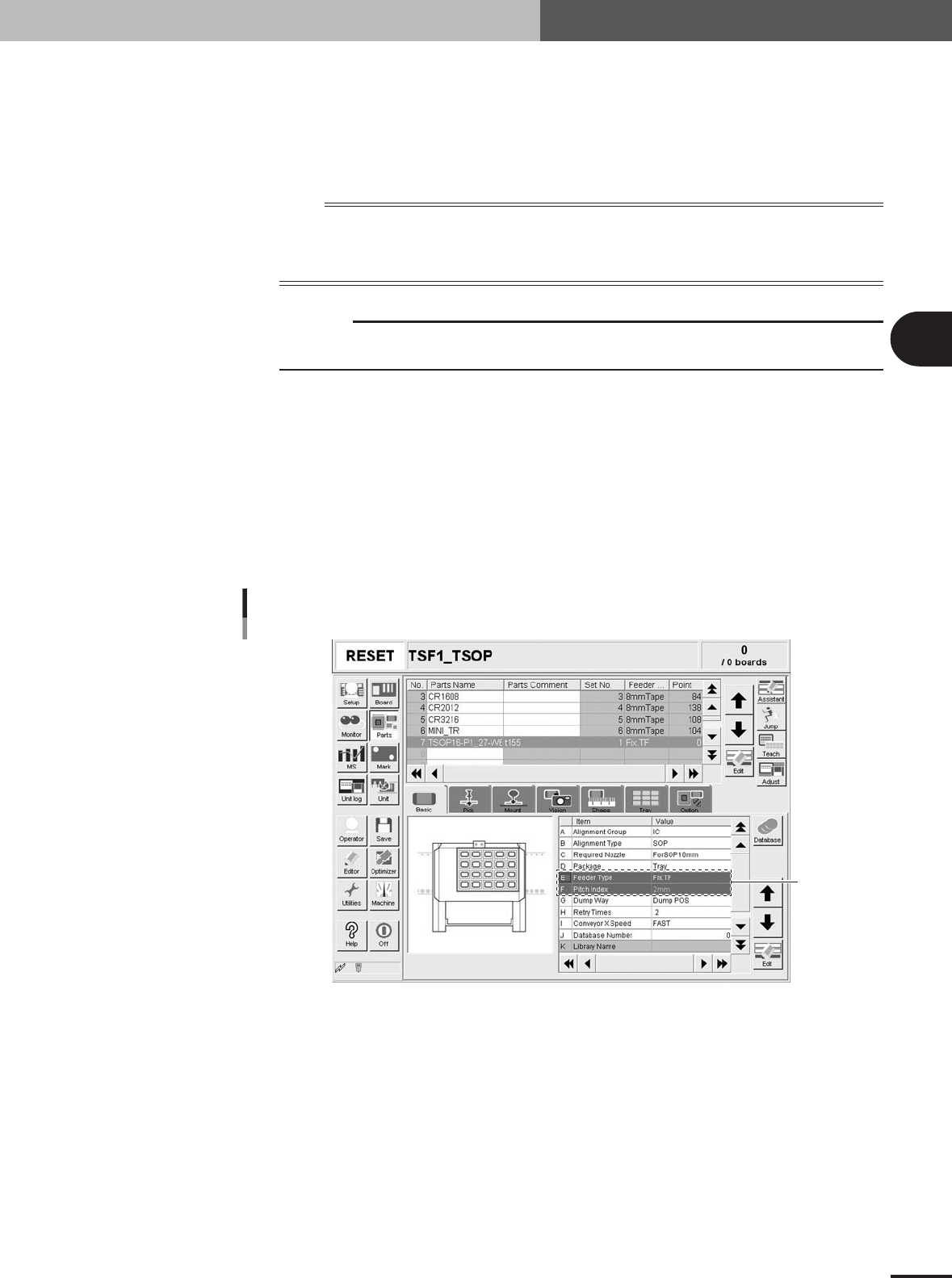 3 - 53 4. Creating the component information 3 Creating the PCB data 4.10.2 Tray shuttle feeder When supplying components from a tray shuttle feeder (called "TSF1"), make the follow- ing settings. 1 Set the TSF…