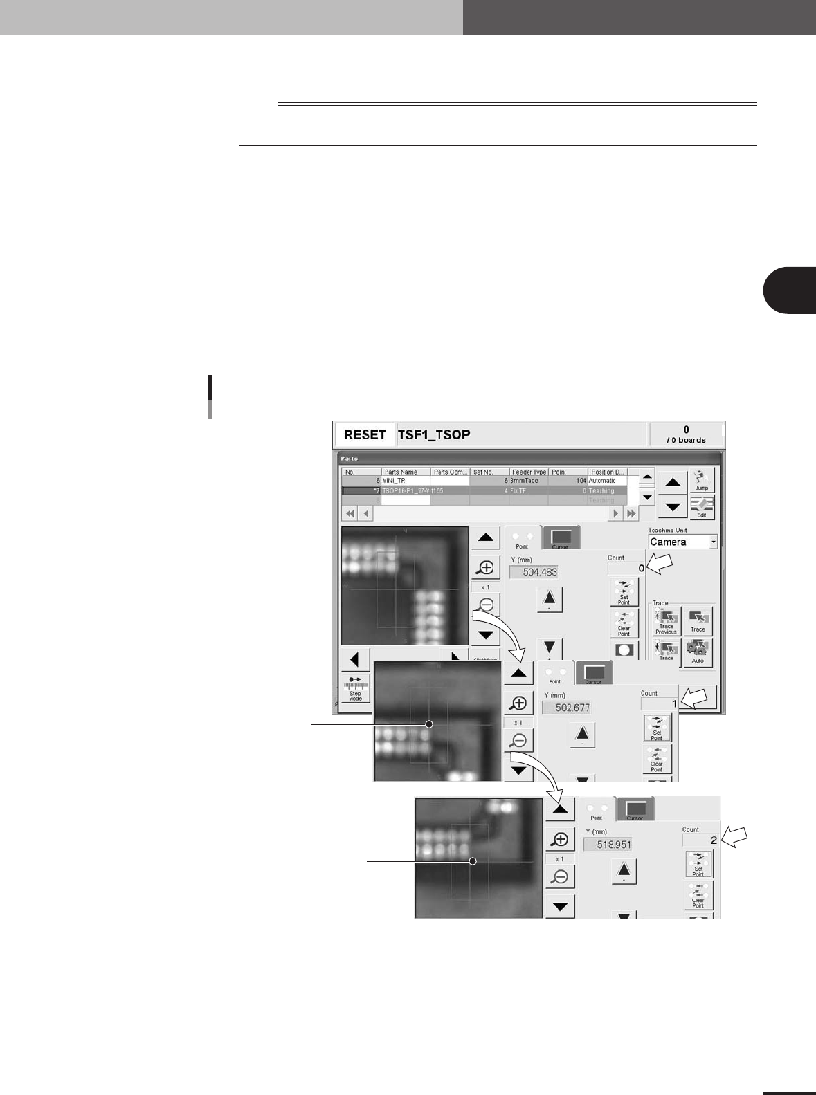 3 - 55 4. Creating the component information 3 Creating the PCB data 4. Move the head assembly by hand to a point at which a component on the tray is viewed with the moving camera. n NOTE Components on the tray are not e…
