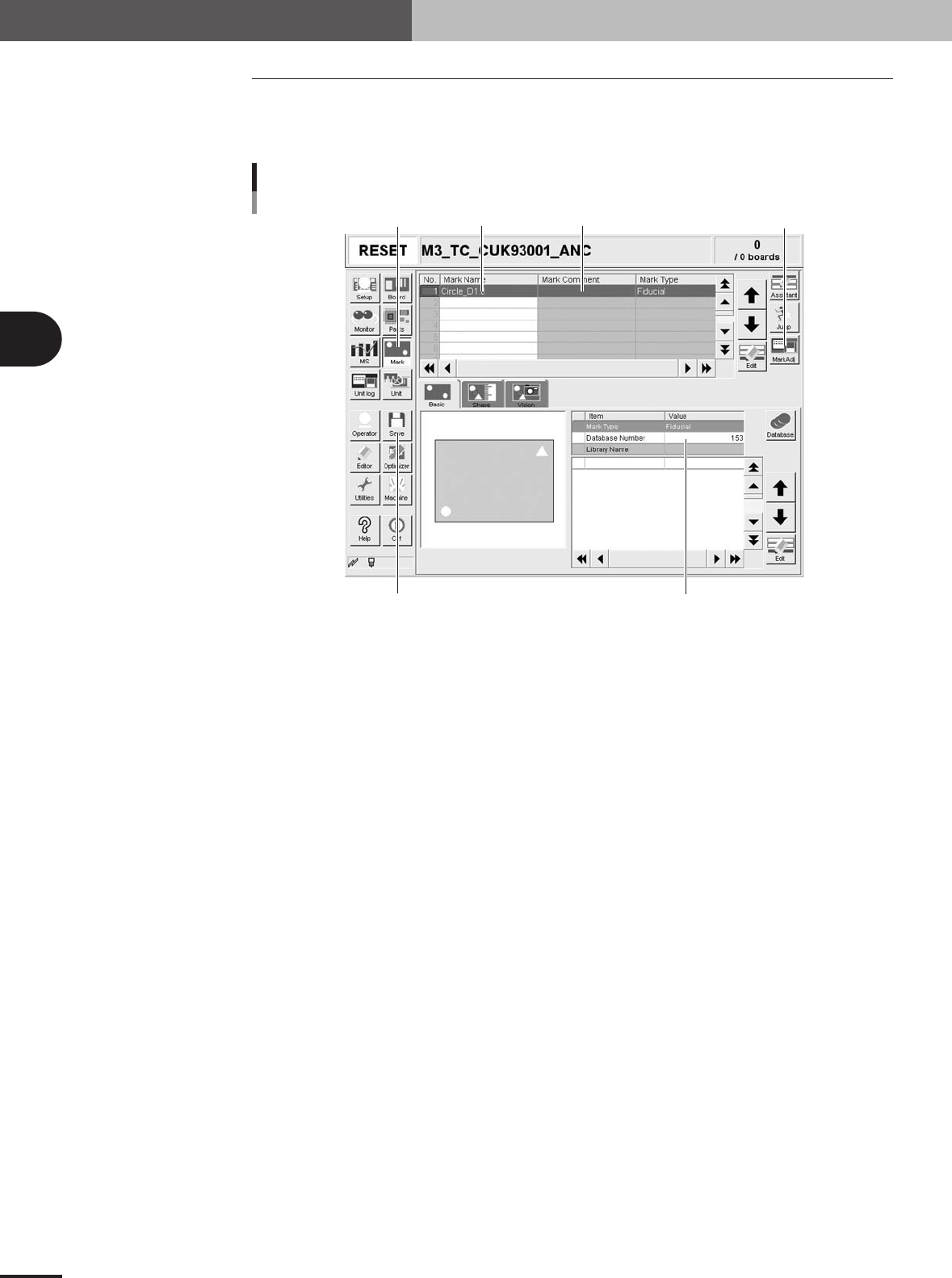 3 - 61 3 Creating the PCB data 5. Creating the mark information 5.2 Basic parameters [Database] button 21 3 Basic parameters 27445-5E-20 1 Mark Type Select the mark type from the dropdown list. Select "Fiducial"…