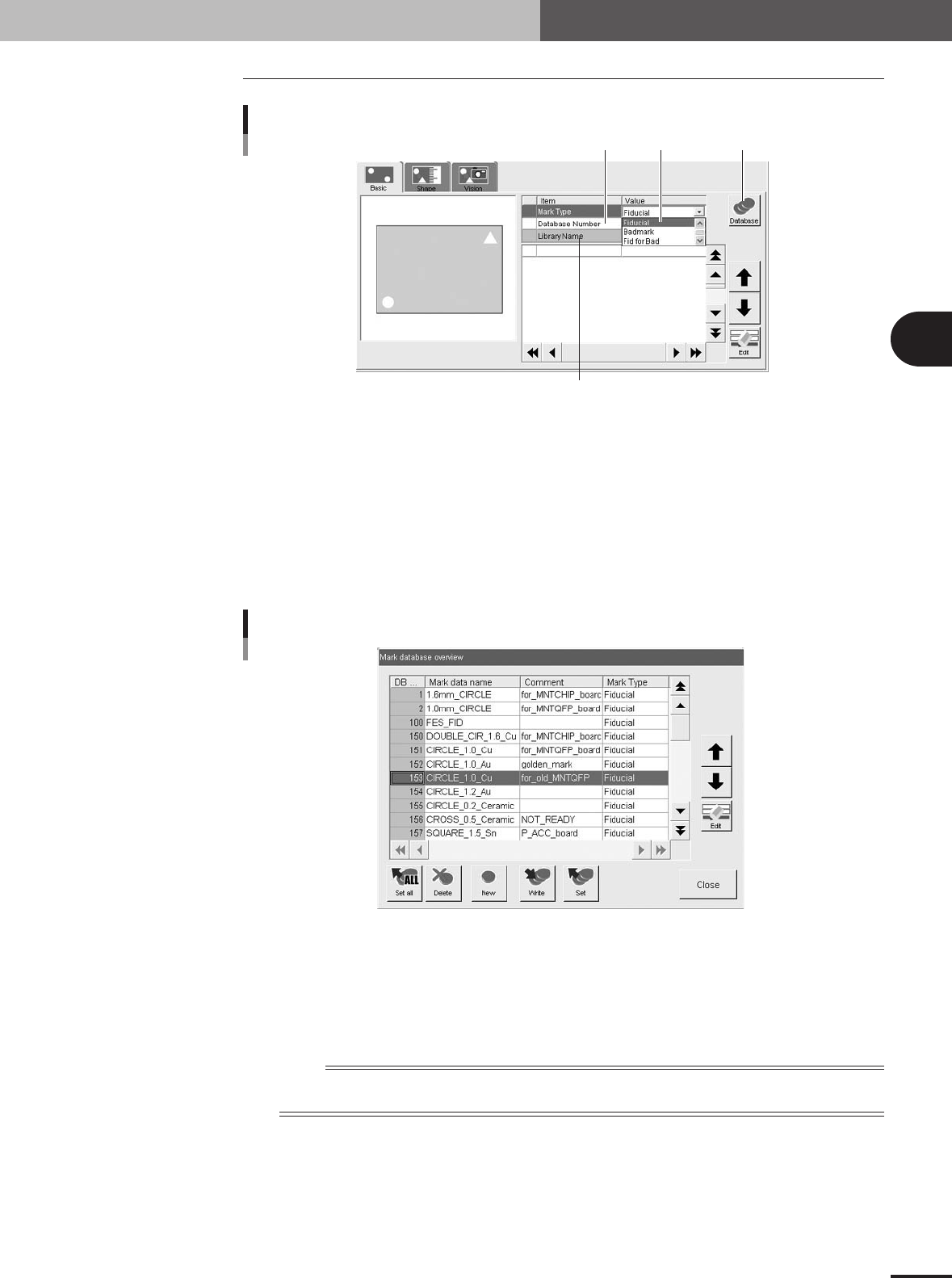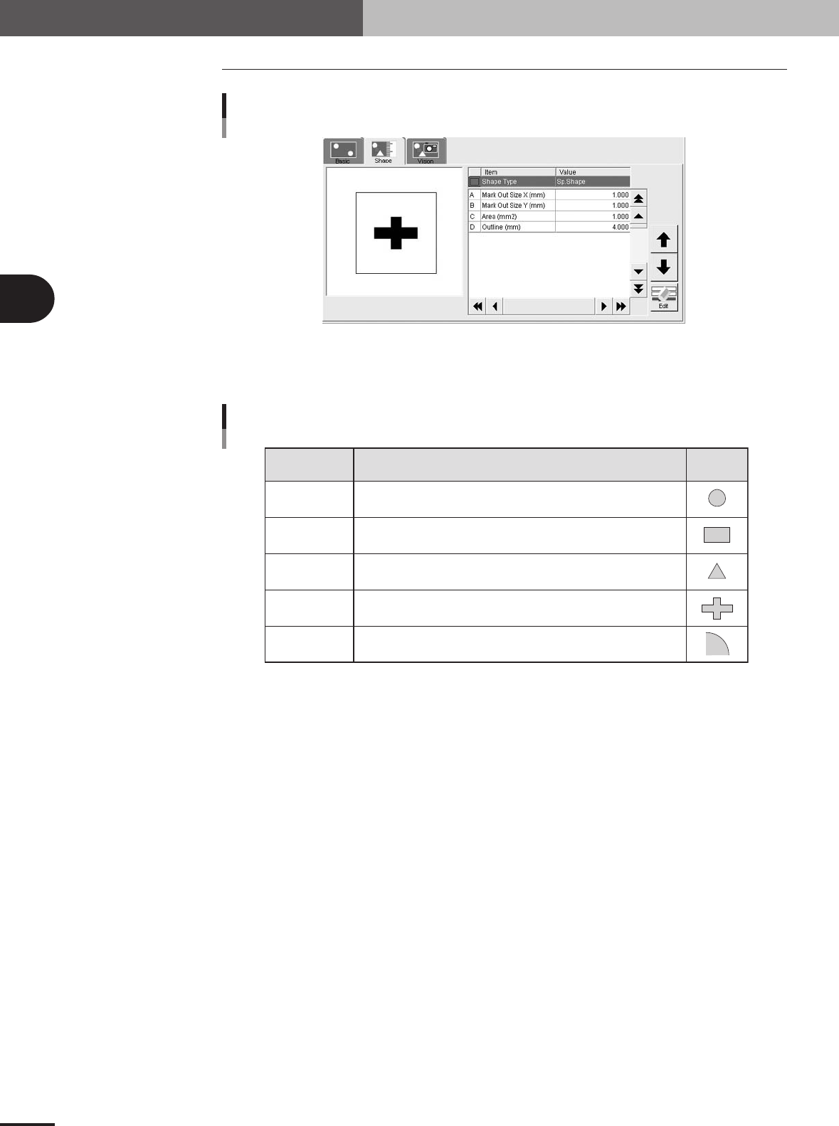 3 - 62 3 Creating the PCB data 5. Creating the mark information 5.3 Shape parameters Shape parameters 27447-5E-20 Shape Type The Shape Type can be selected from the following 5 types. Setting Description Example Circle S…