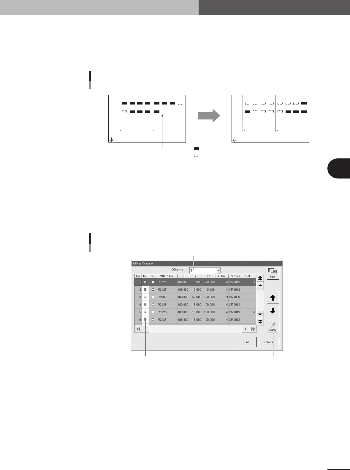 the offset function for multi-block PCBs (See "3.3 Offset parameters" in Chapter 3.) is