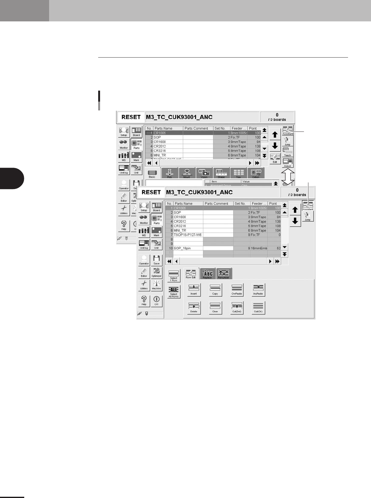 4- 16 4 Using the adv anced functions 5. Edit Assistant function The Adjust Assistant function allows you to edit, search and replace within the selected row range. 5.1 Switching to the Edit Assistant screen When you pre…