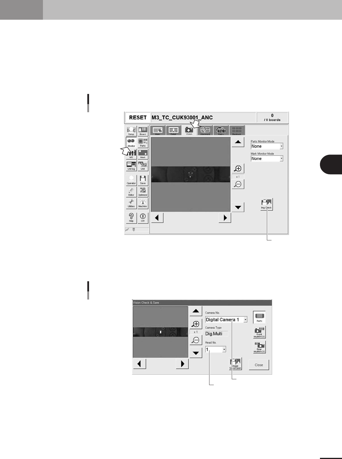 On the [Vision] tab of the [Monitor] screen, press the [Img Check] button. The "Vision