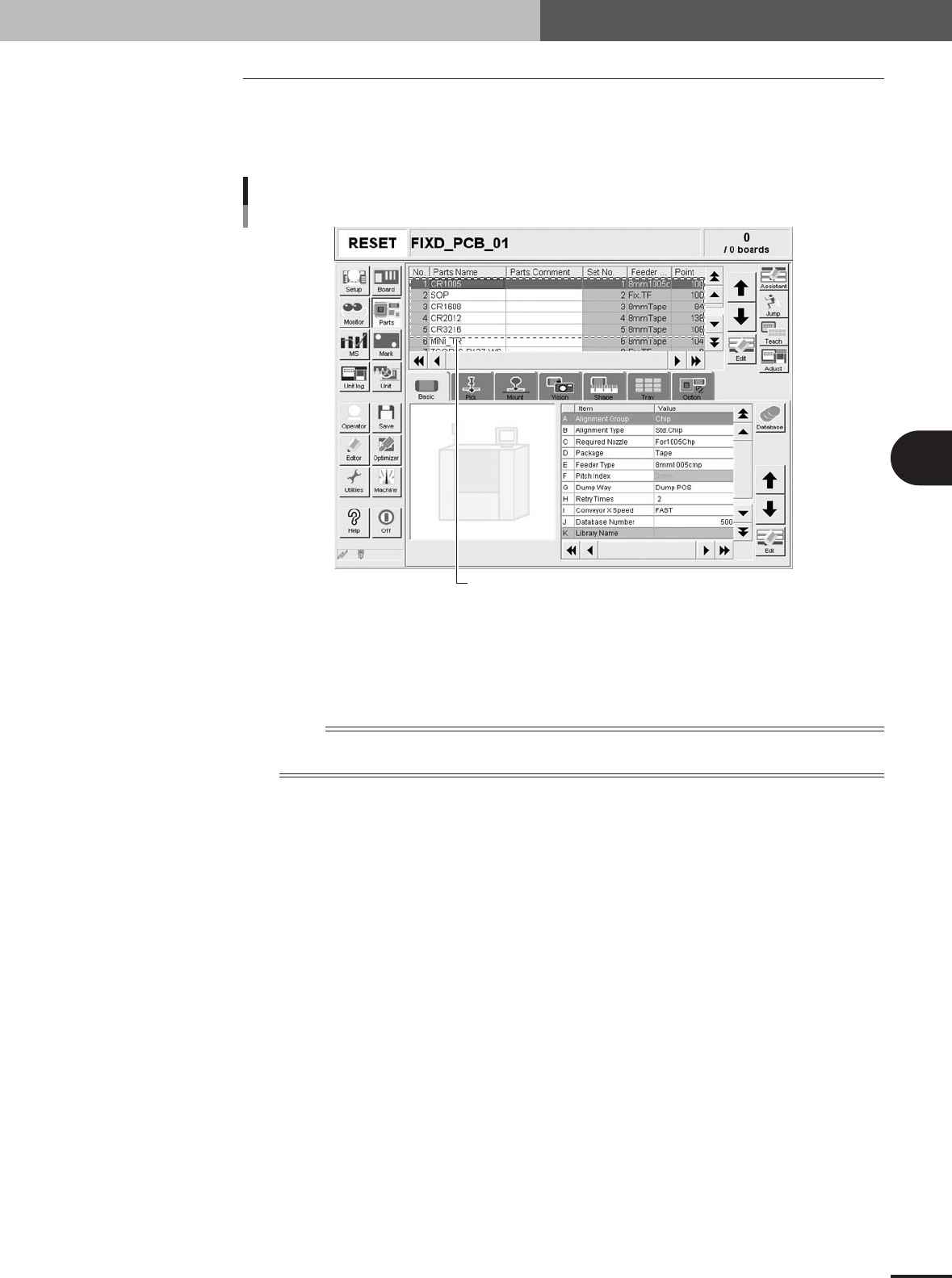 the fixed board component feeder type. If a match, the operation