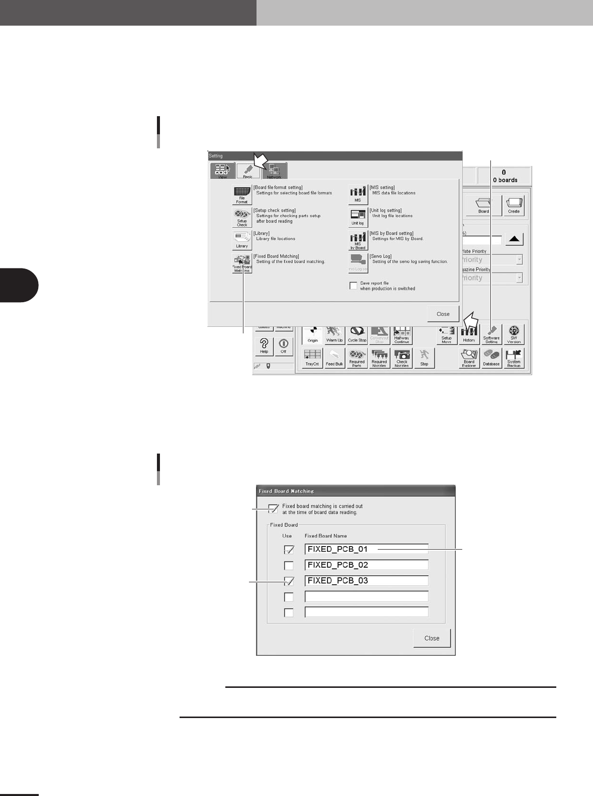 Press the [Fixed Board Matching] button under the [Basic] tab in the Setting window.